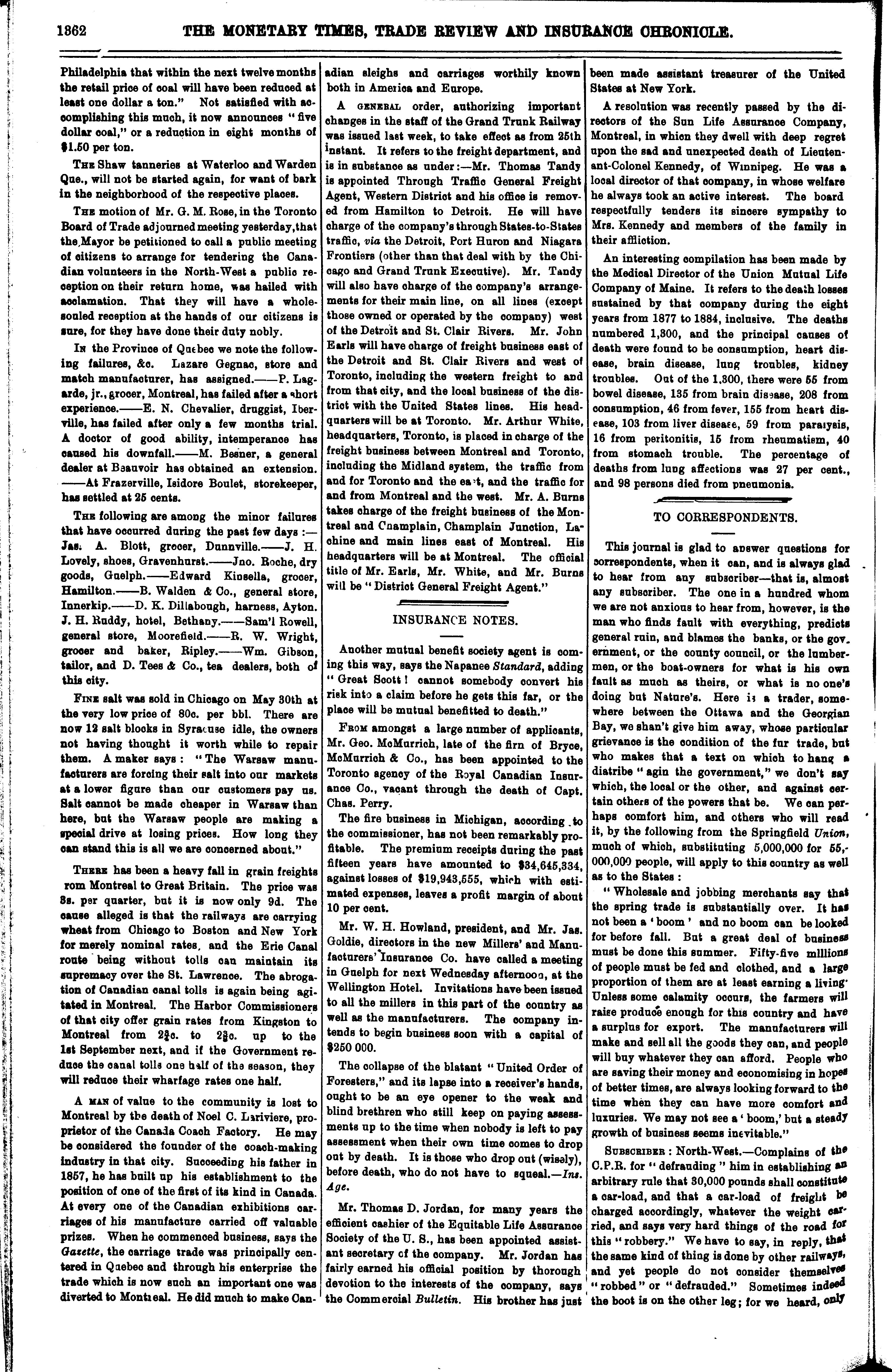 The monetary times, trade review and insurance chronicle : [Vol. 18, no. 49 (June 5, 1885)]