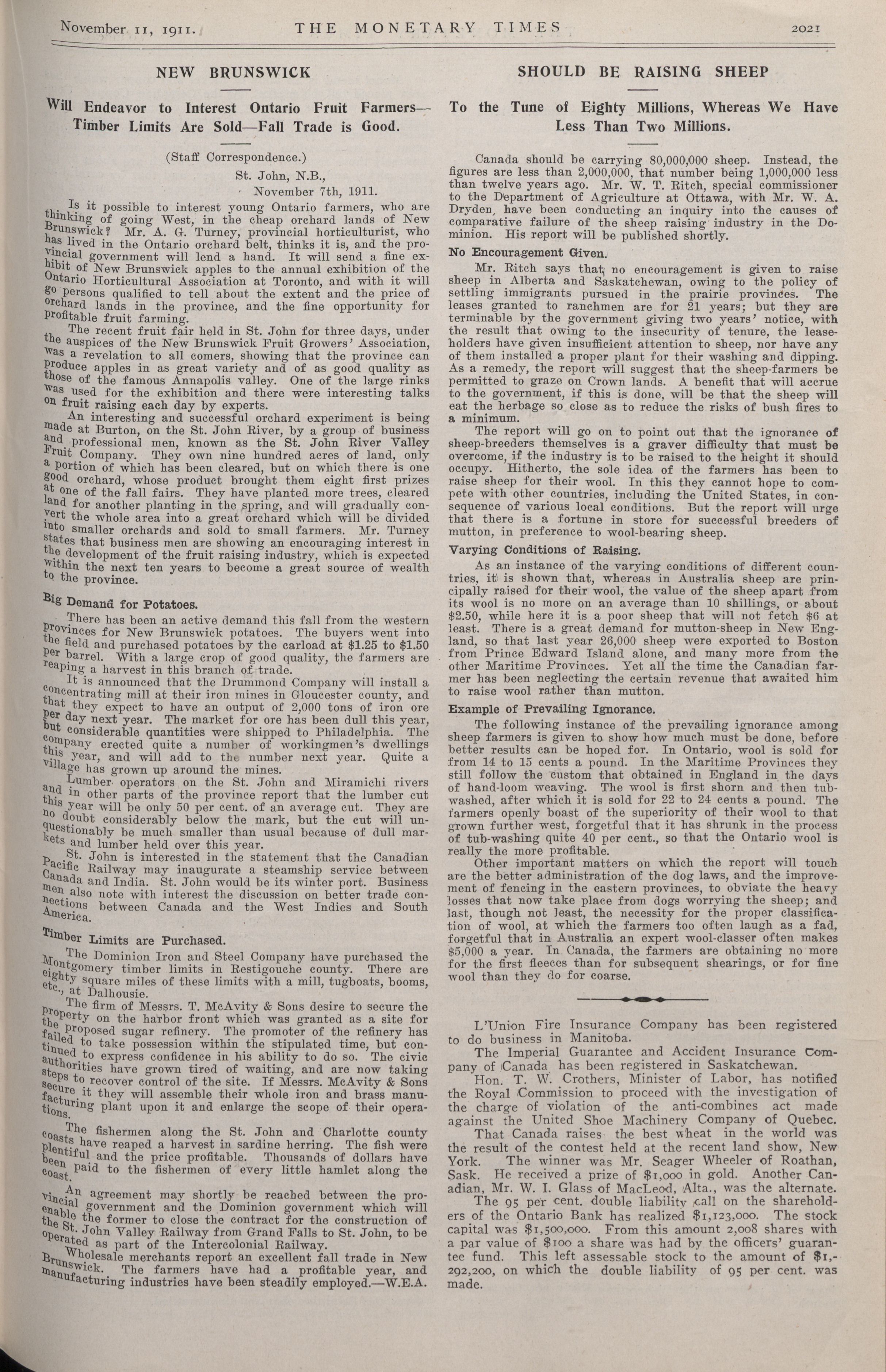 The Monetary Times, trade review and insurance chronicle. : Vol. 47 No. 20 (November 11, 1911)