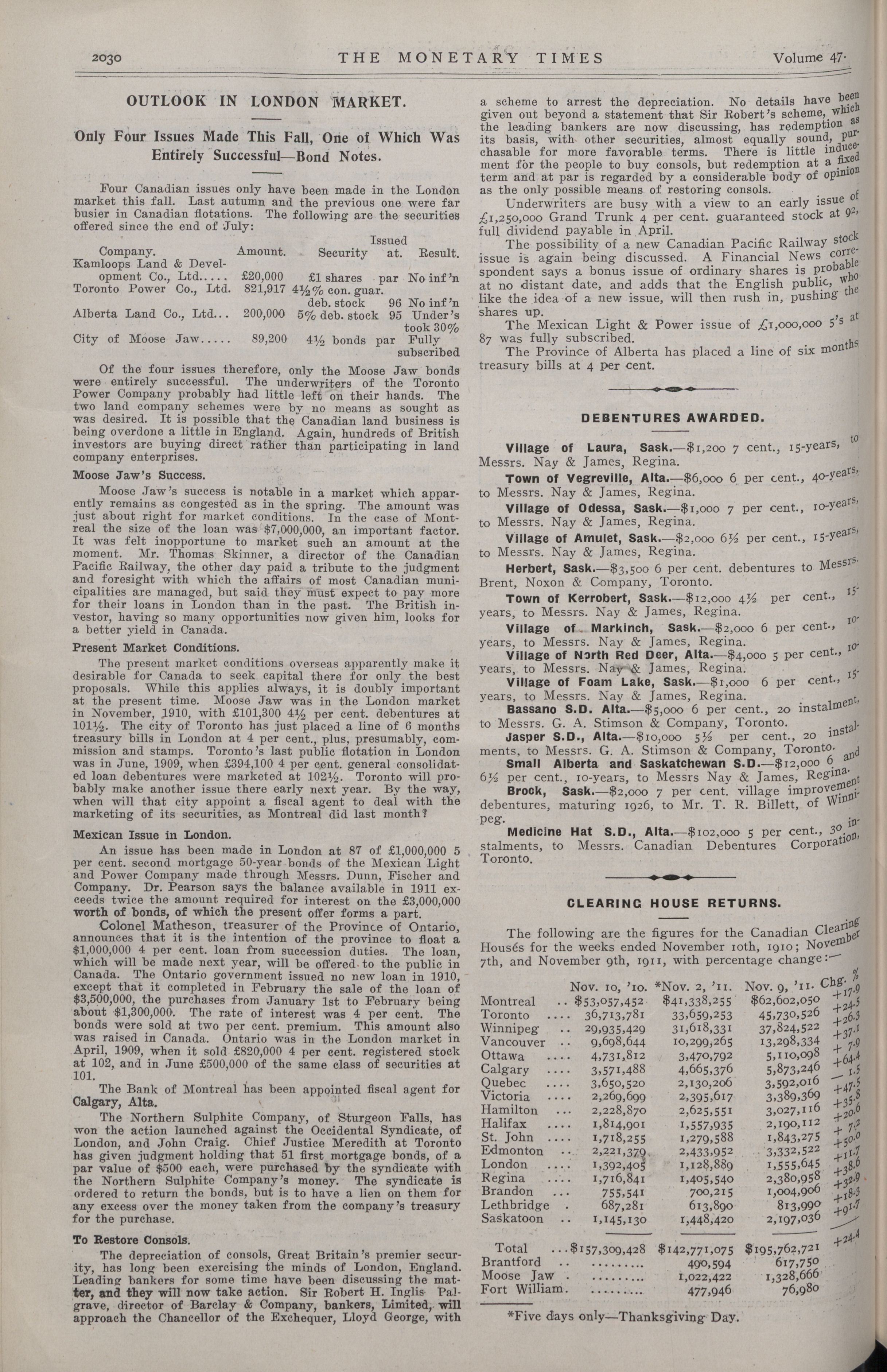 The Monetary Times, trade review and insurance chronicle. : Vol. 47 No. 20 (November 11, 1911)