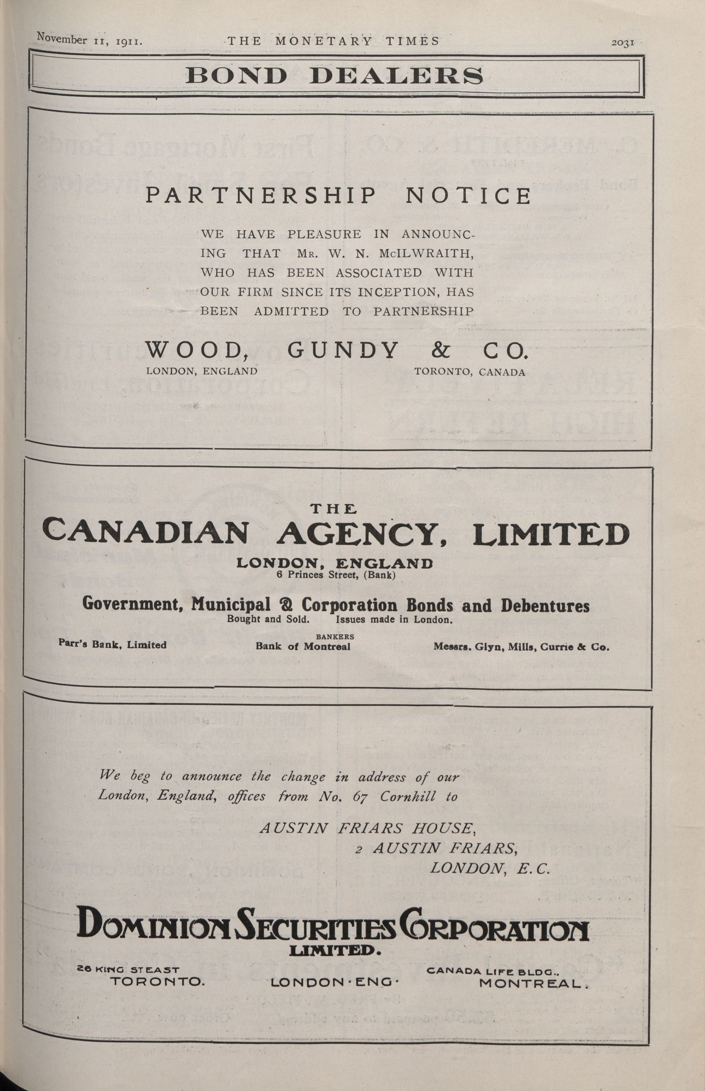 The Monetary Times, trade review and insurance chronicle. : Vol. 47 No. 20 (November 11, 1911)