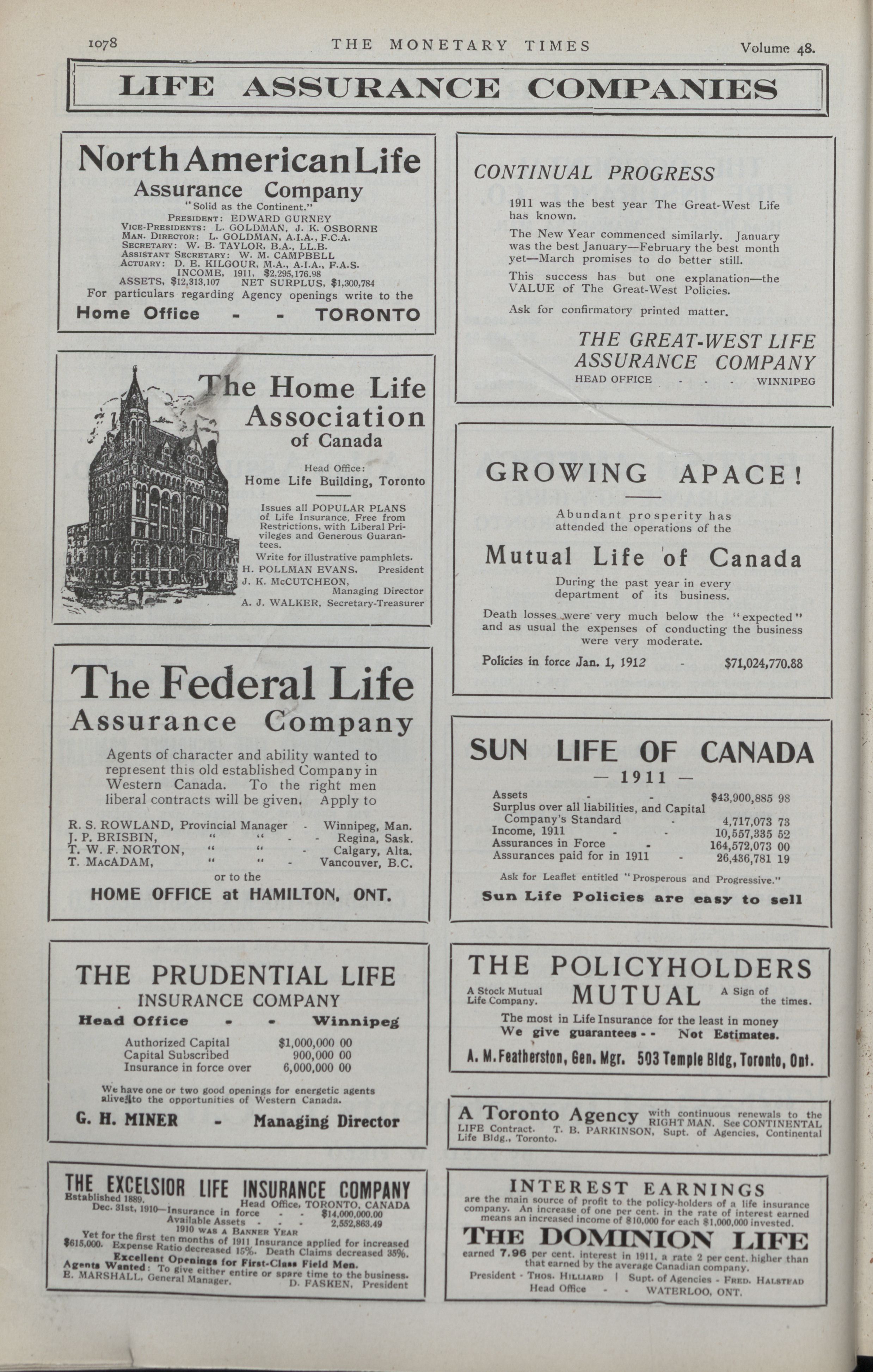 The Monetary Times, trade review and insurance chronicle. : Vol. 48 No. 10 (March 9, 1912)