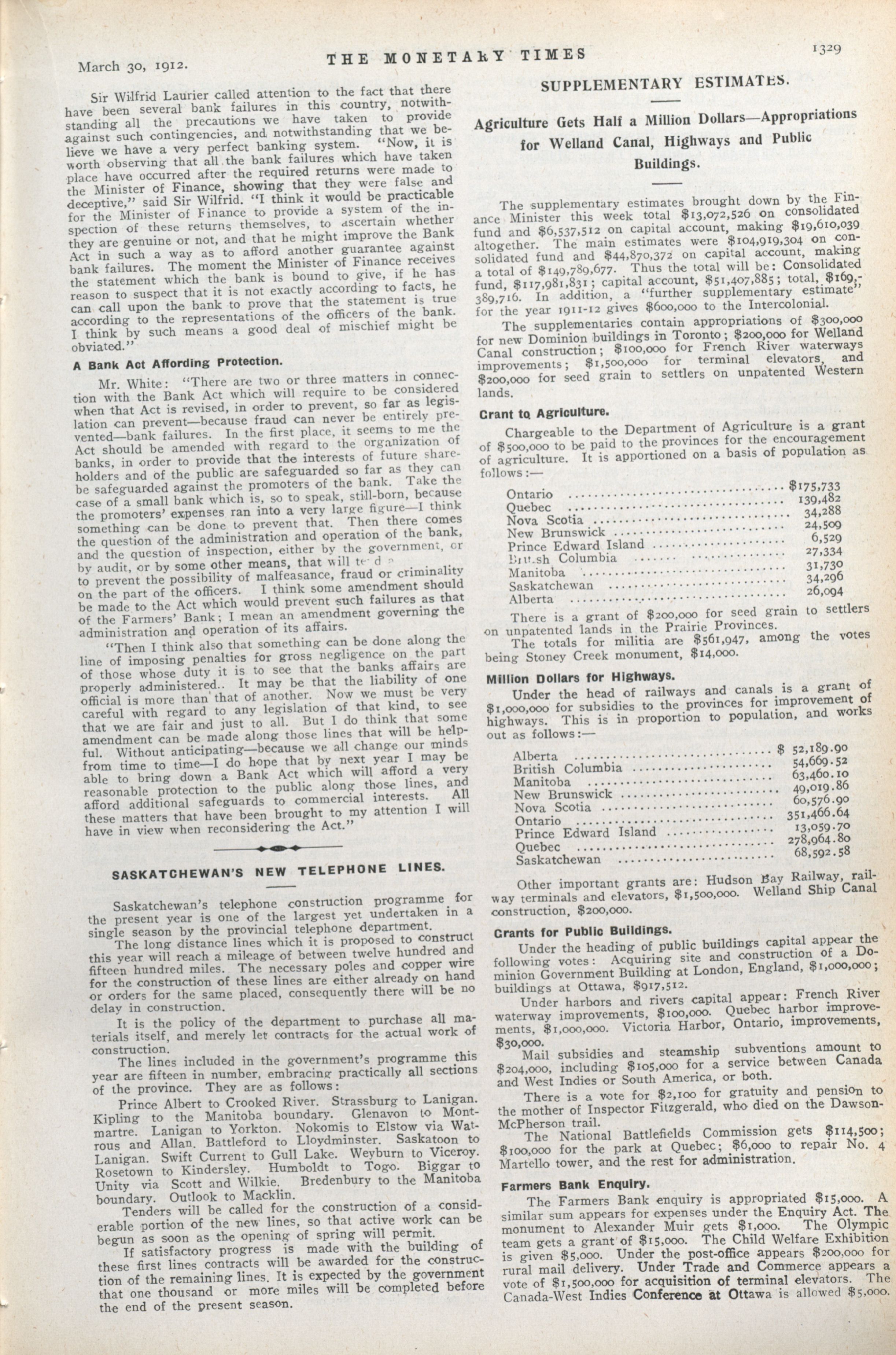 The monetary times, trade review and insurance chronicle : Vol. 48 No. 13 (March 30, 1912)