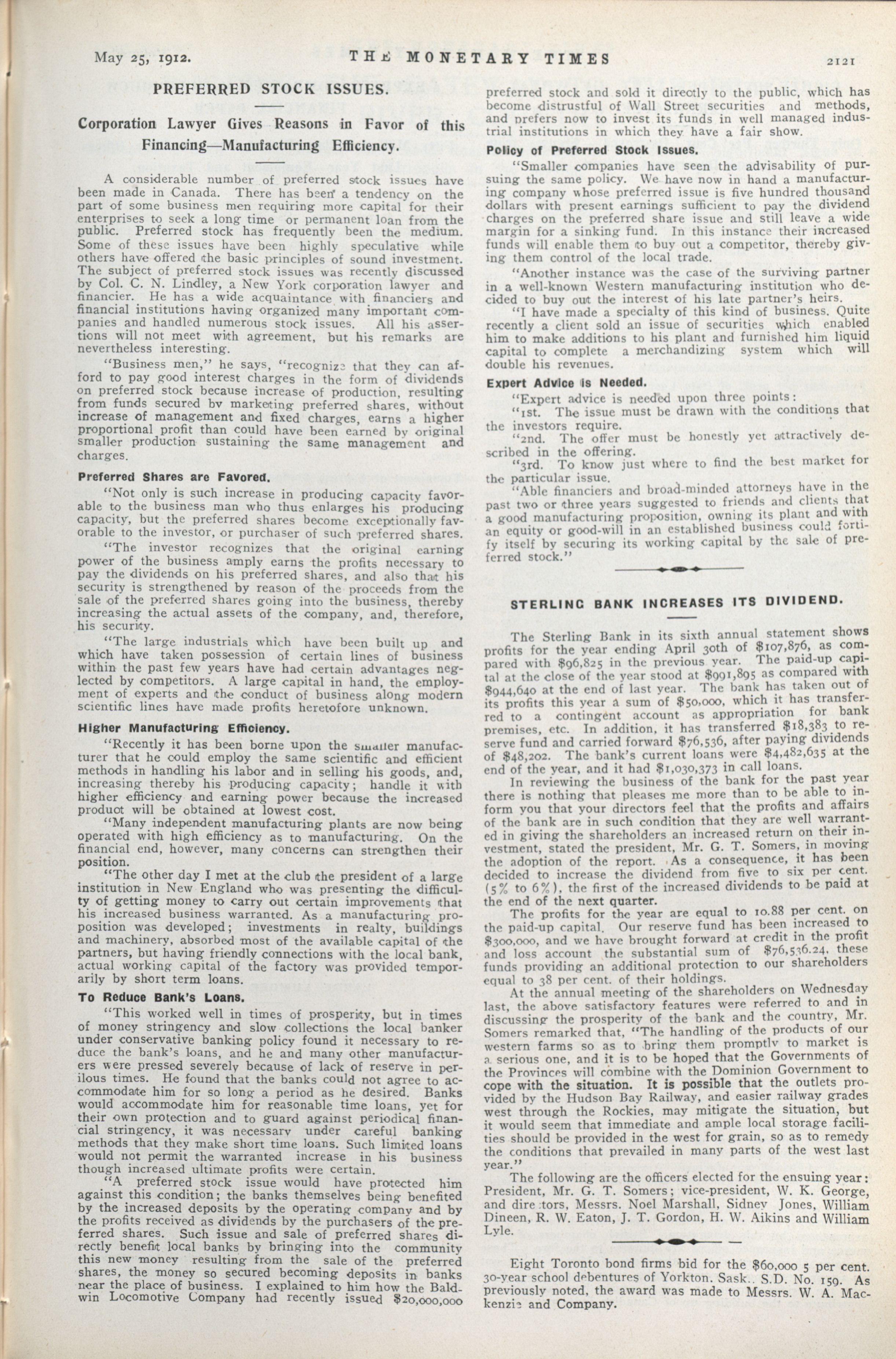 The Monetary Times, trade review and insurance chronicle. : Vol. 48 No. 21 (May 25, 1912)