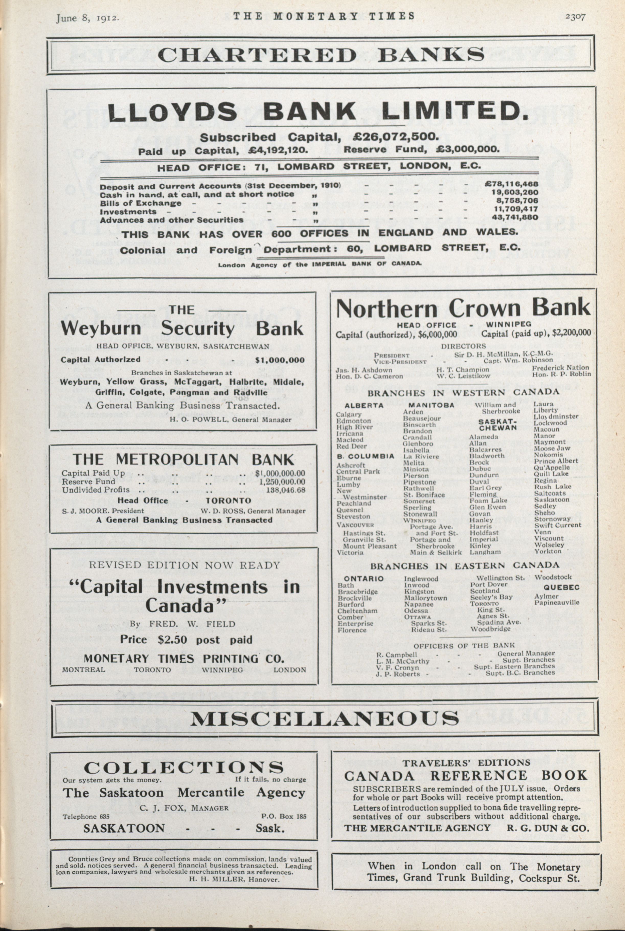 - Toronto, Canada : The Monetary Times Printing Company of Canada, Limited, [1912]