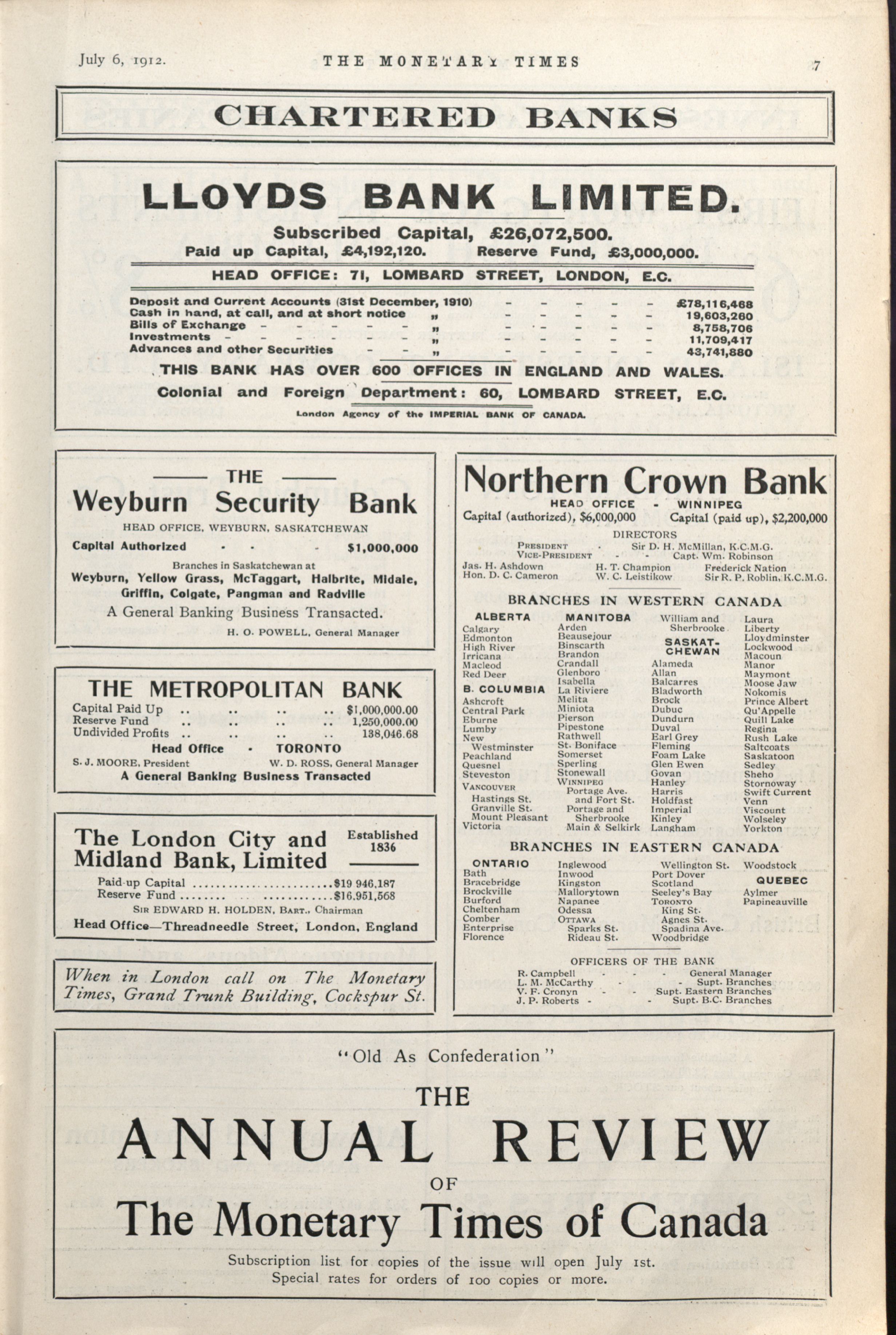 - The Monetary Times, trade review and insurance chronicle. : Vol. 49 No. 1 (July 6th, 1912)