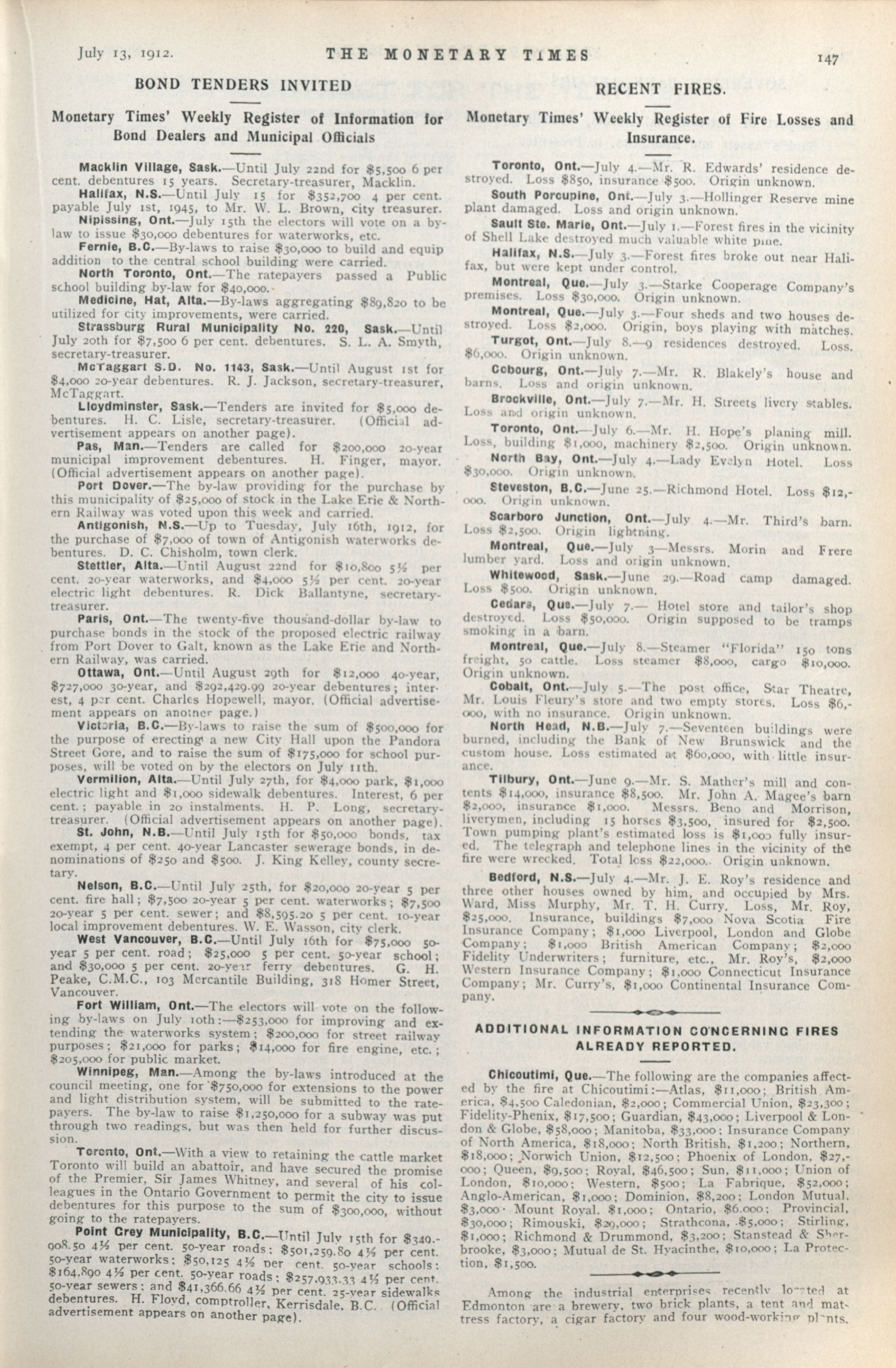 The monetary times, trade review and insurance chronicle : Vol. 49 No. 2 (July 13th, 1912)