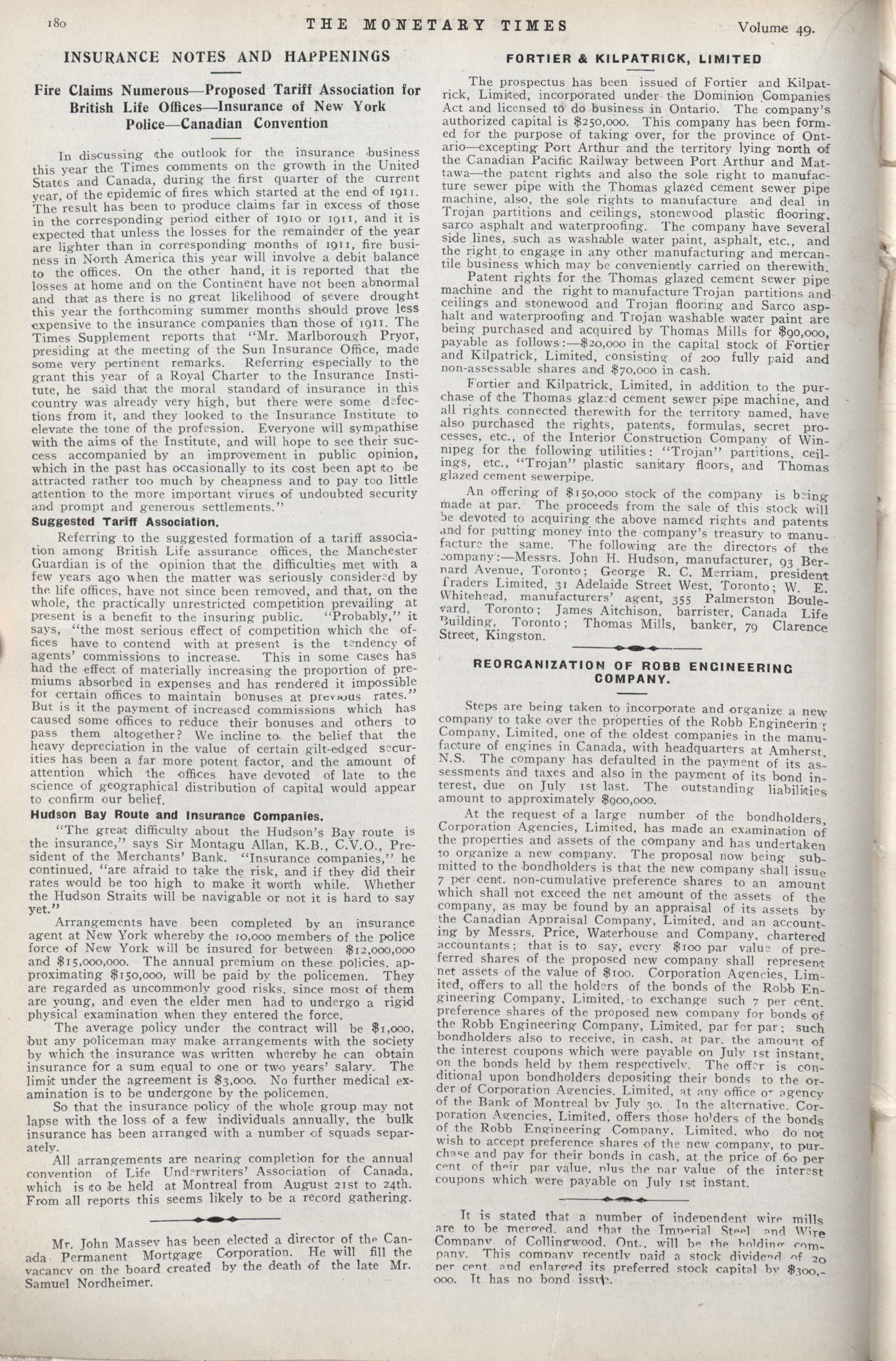 - The Monetary Times, trade review and insurance chronicle. : Vol. 49 No. 3 (July 20, 1912)