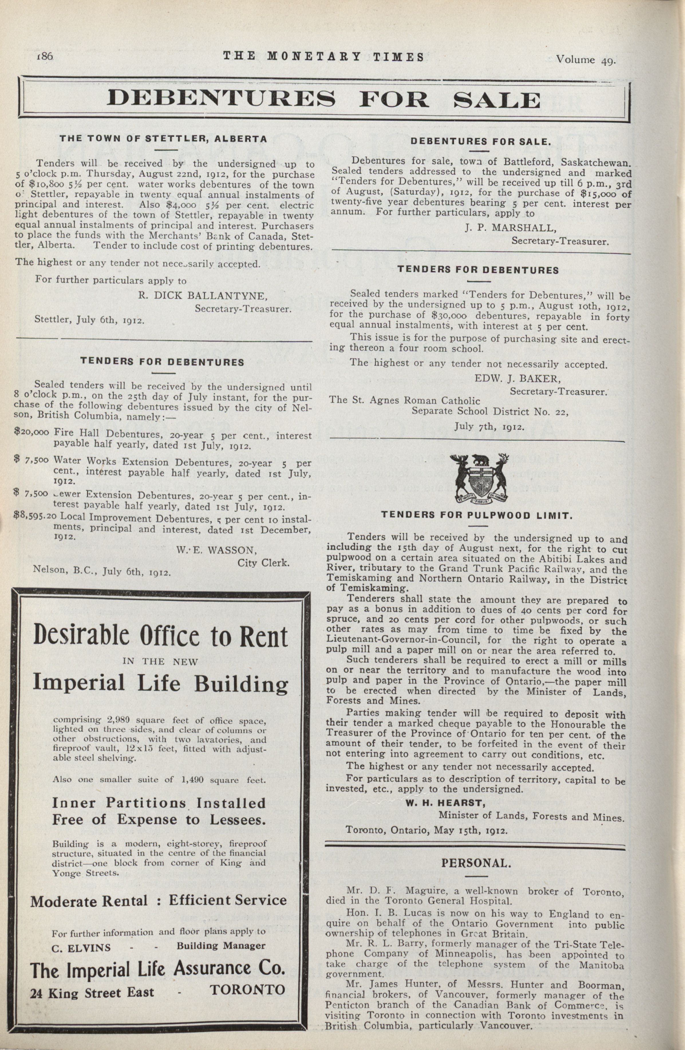 - The Monetary Times, trade review and insurance chronicle. : Vol. 49 No. 3 (July 20, 1912)
