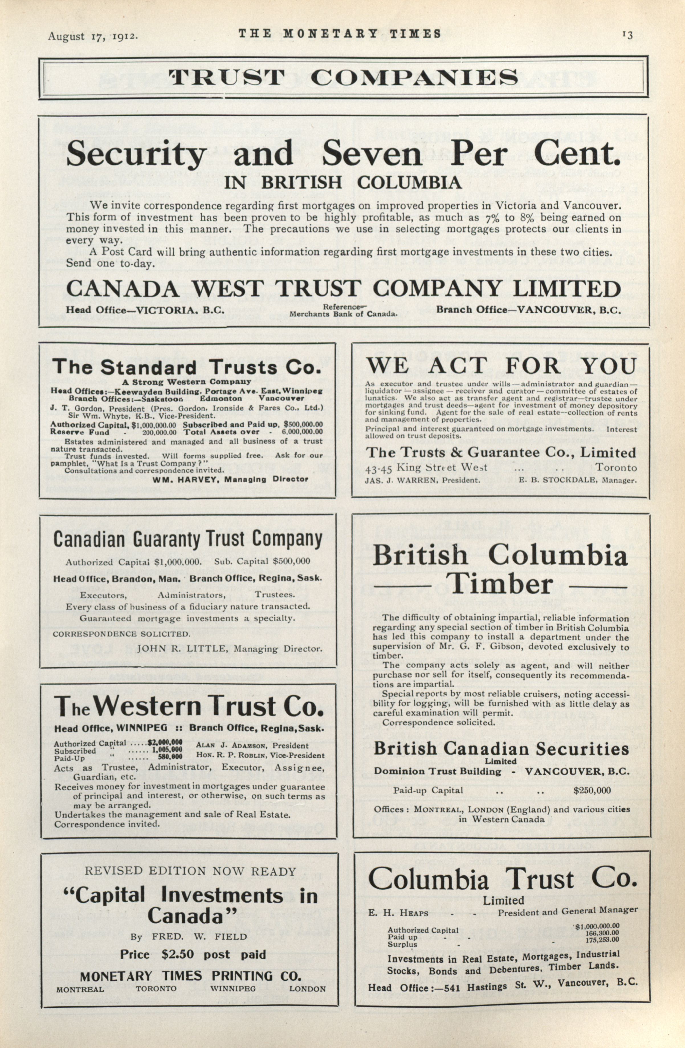 - The Monetary Times, trade review and insurance chronicle. : Vol. 49 No. 7 (August 17, 1912)
