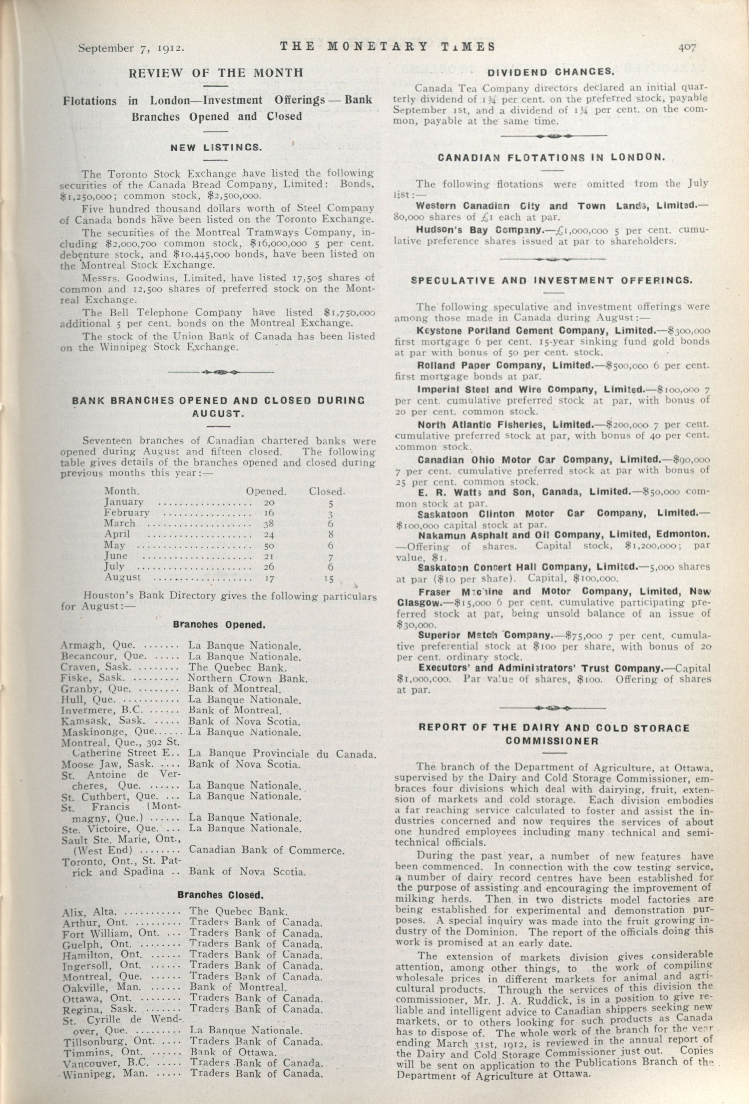 The Monetary Times, trade review and insurance chronicle. : Vol. 49 No. 10 (September 7, 1912)