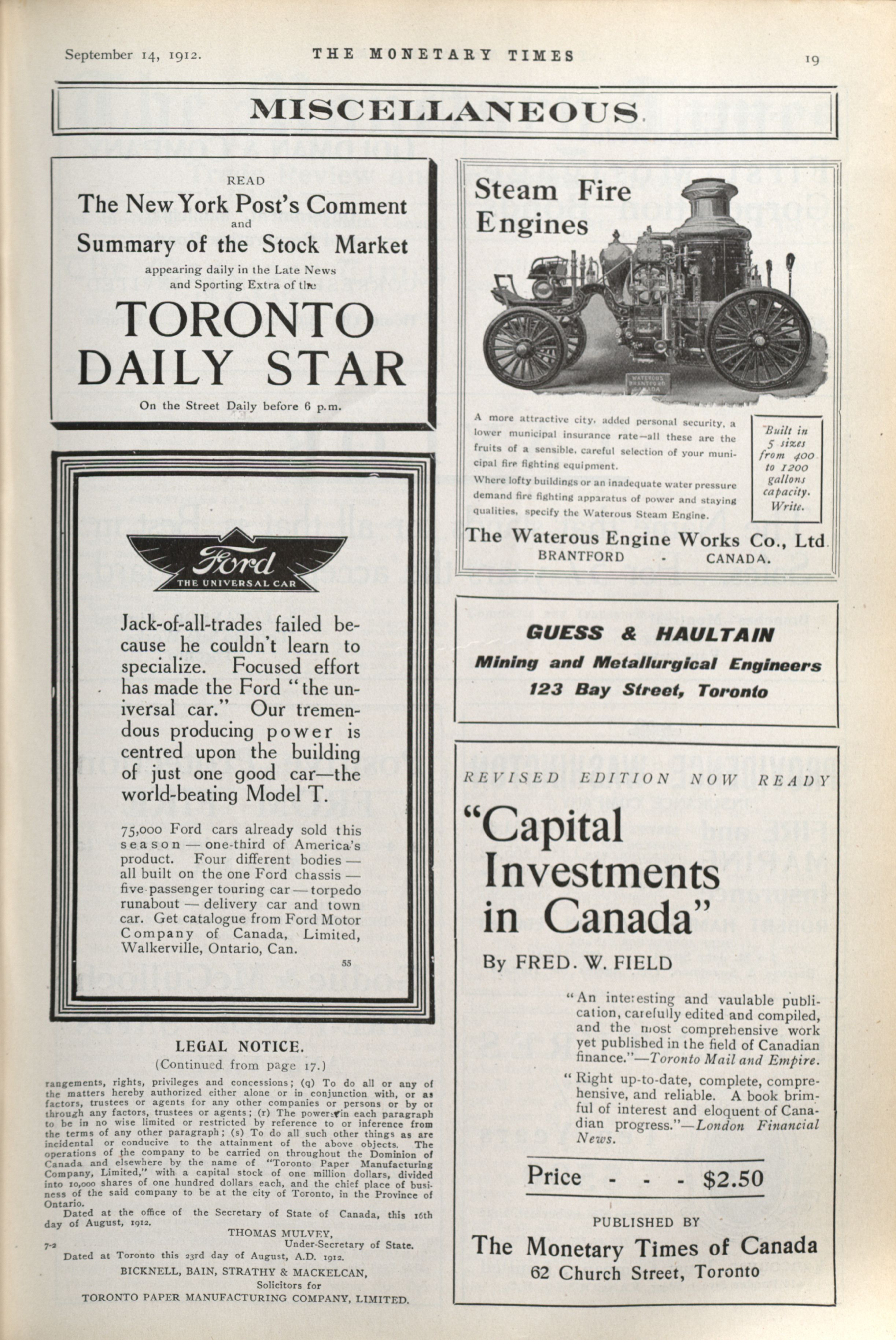 - The Monetary Times, trade review and insurance chronicle. : Vol. 49 No. 11 (September 14, 1912)