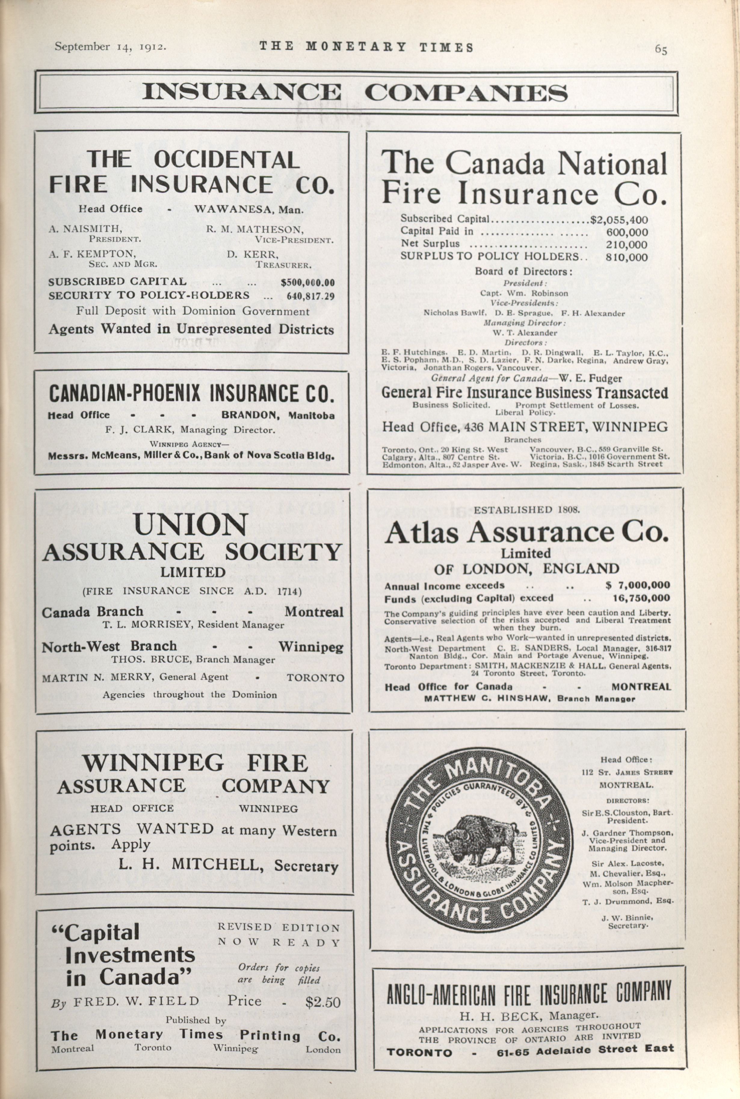 - The Monetary Times, trade review and insurance chronicle. : Vol. 49 No. 11 (September 14, 1912)