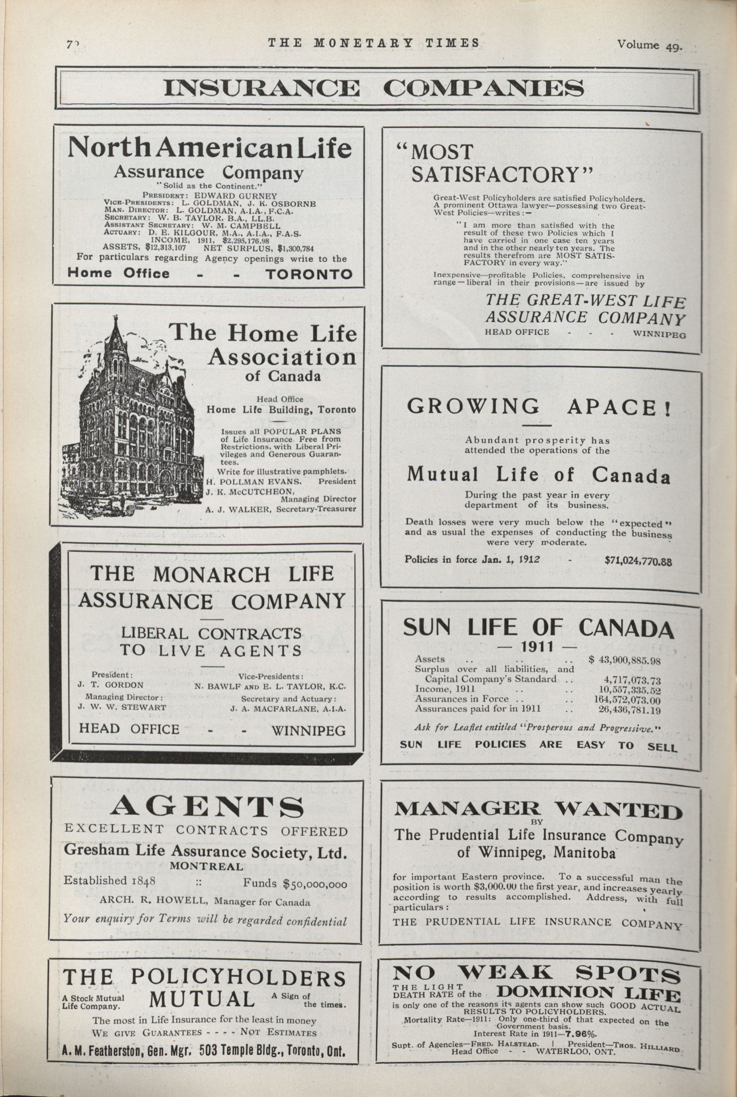 - The Monetary Times, trade review and insurance chronicle. : Vol. 49 No. 11 (September 14, 1912)