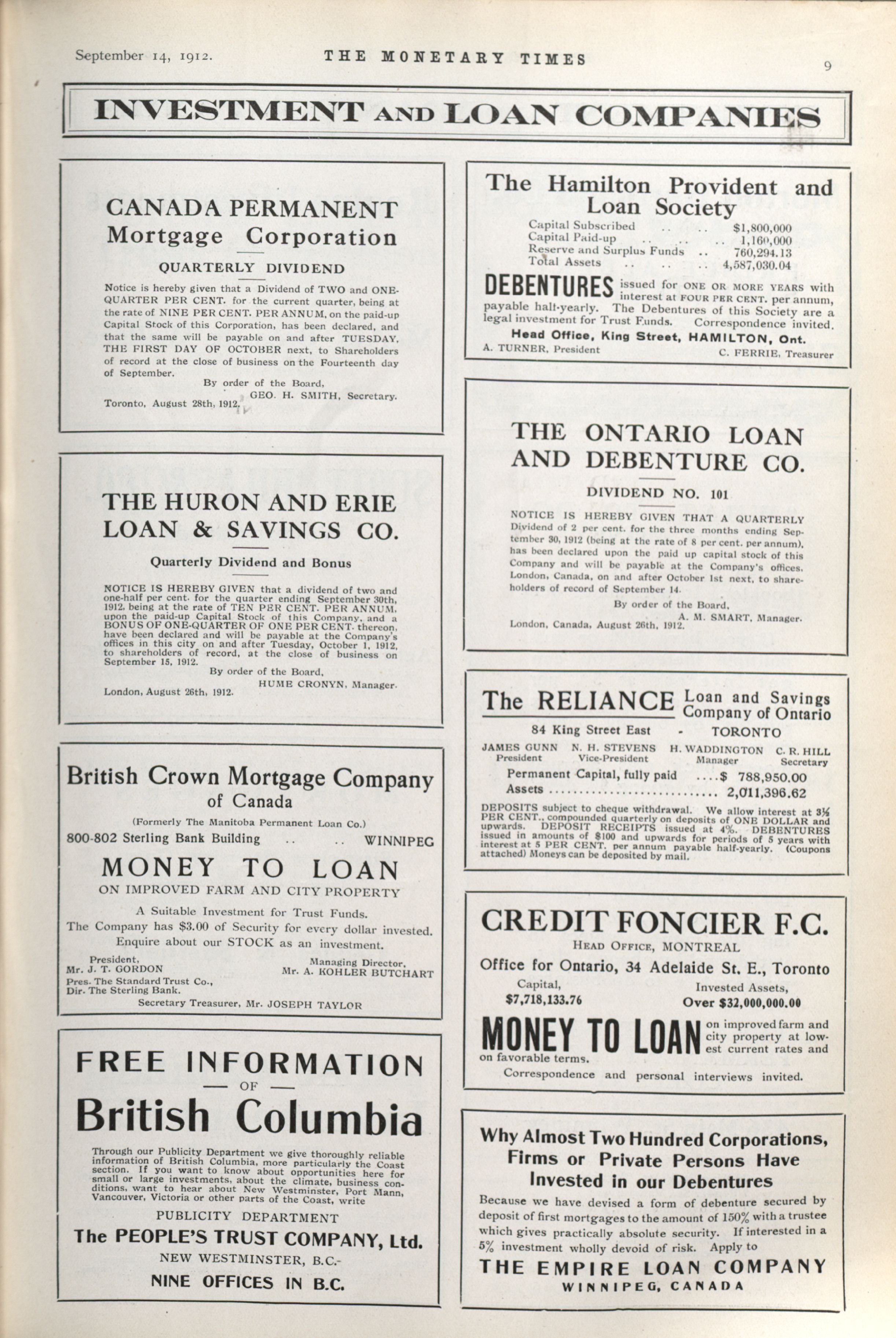 - The Monetary Times, trade review and insurance chronicle. : Vol. 49 No. 11 (September 14, 1912)
