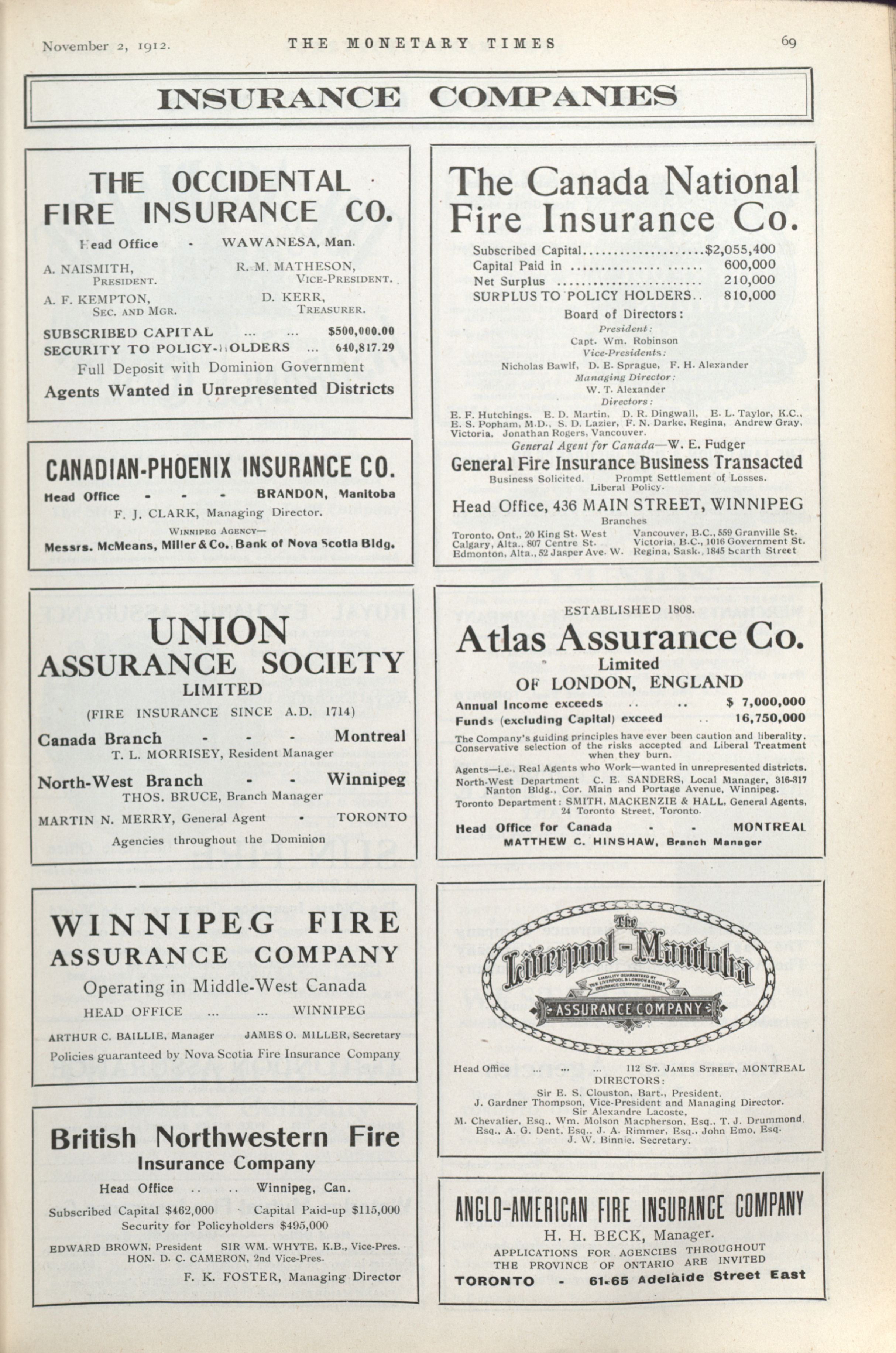 The Monetary Times, trade review and insurance chronicle. : Vol. 49 No. 18 (November 2, 1912)