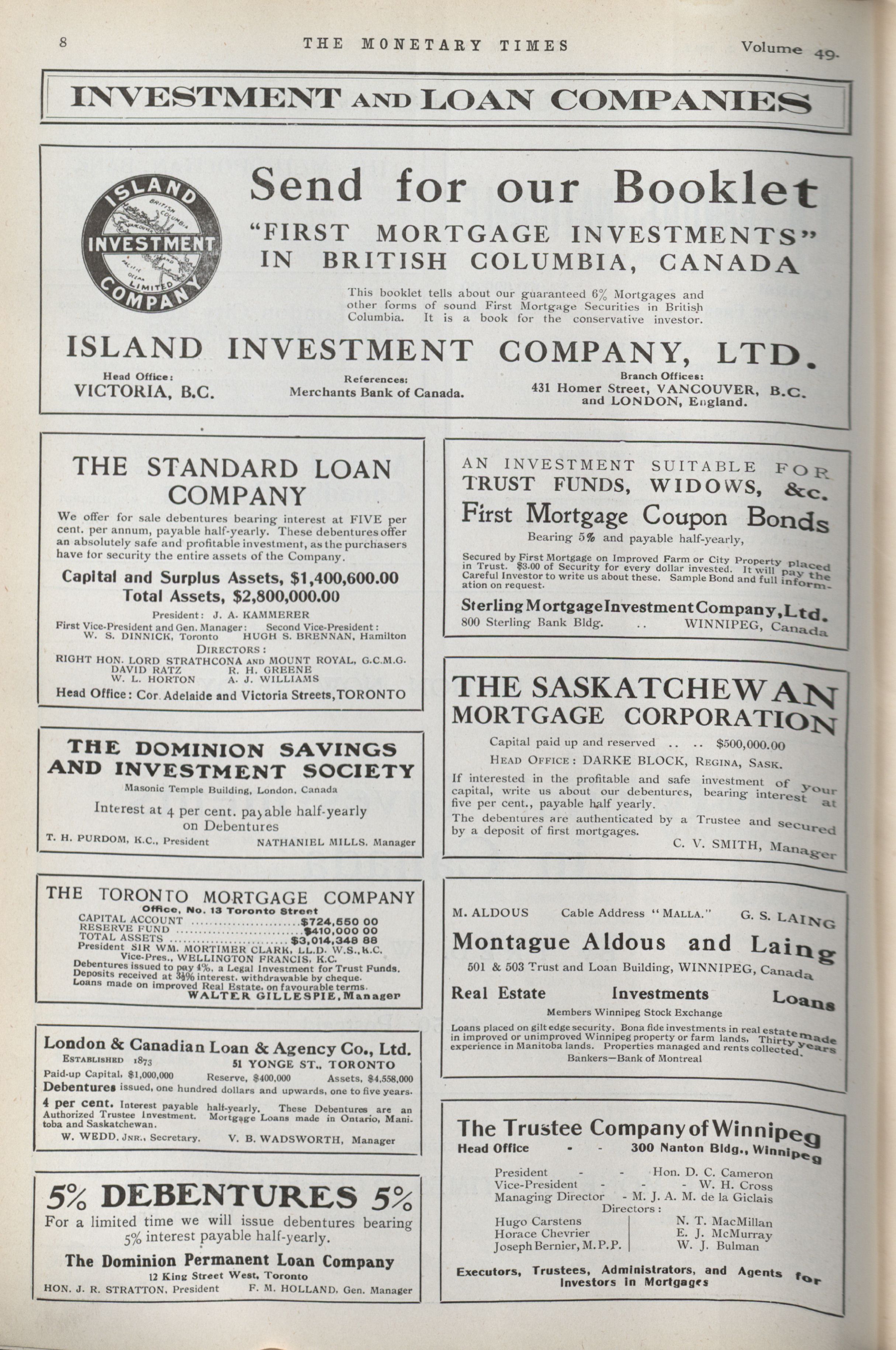 Toronto, Canada : The Monetary Times Printing Company of Canada, Limited, [1912]