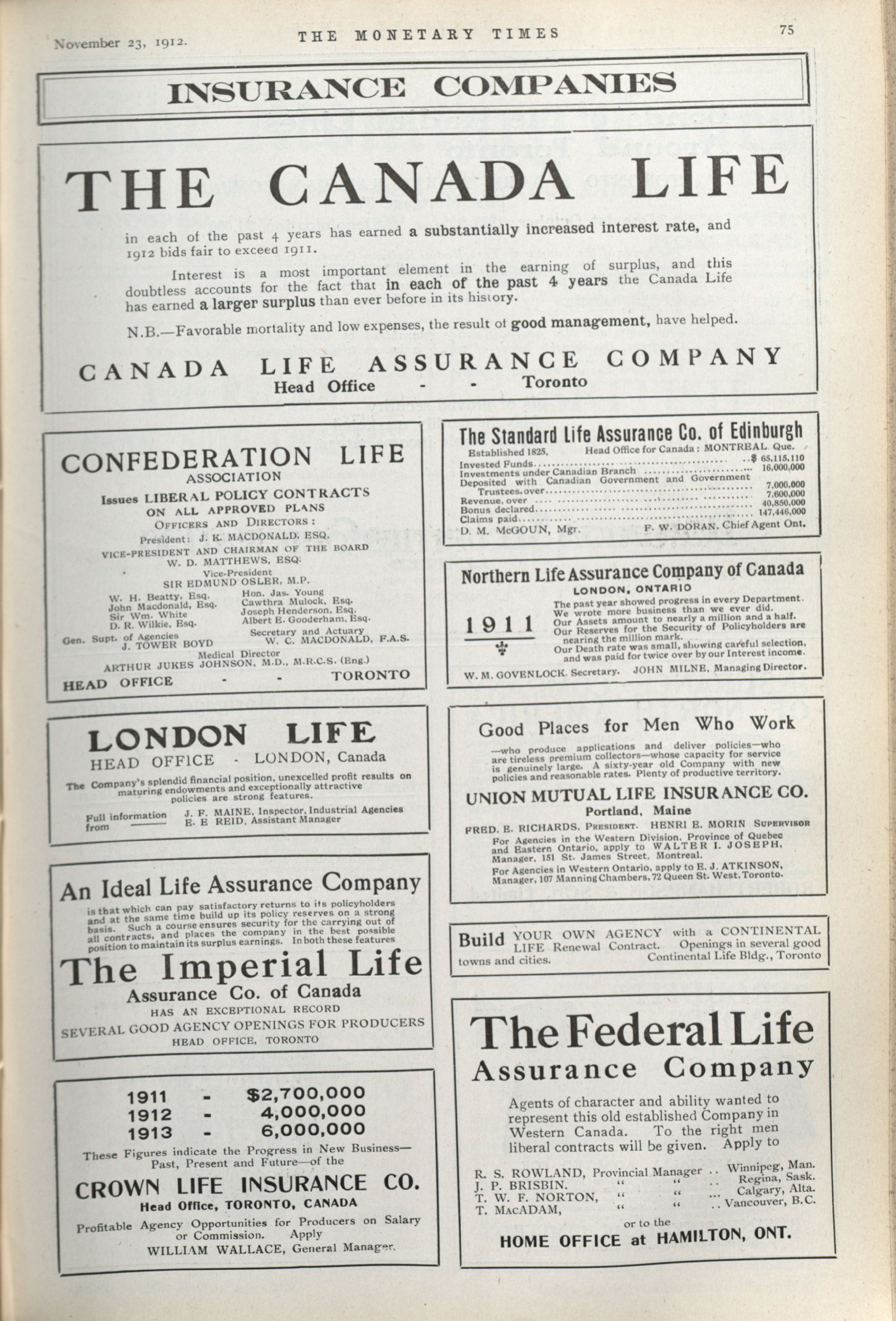 - The Monetary Times, trade review and insurance chronicle. : Vol. 49 No. 21 (November 23, 1912)