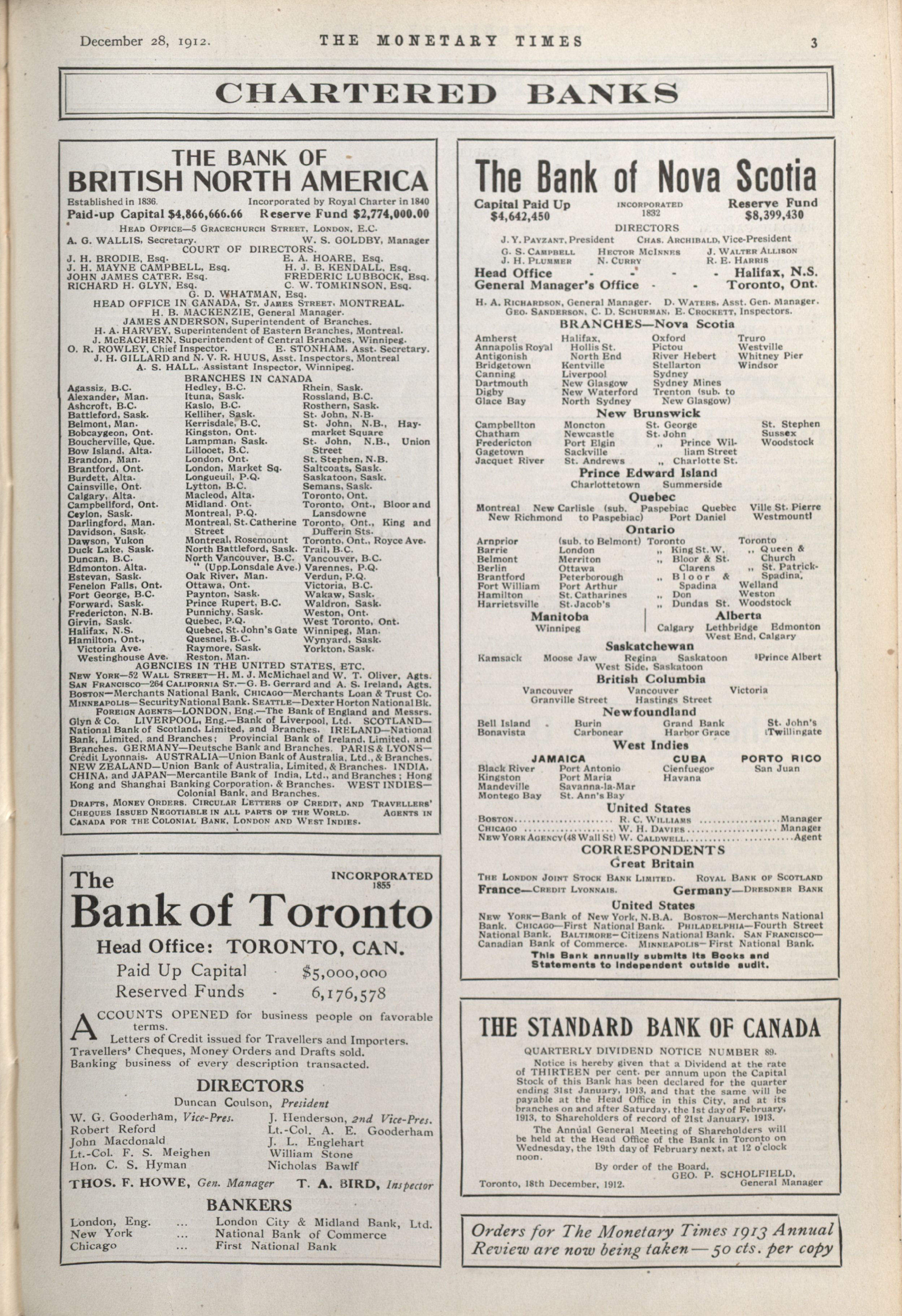 - The Monetary Times, trade review and insurance chronicle. : Vol. 49 No. 26 (December 28, 1912)
