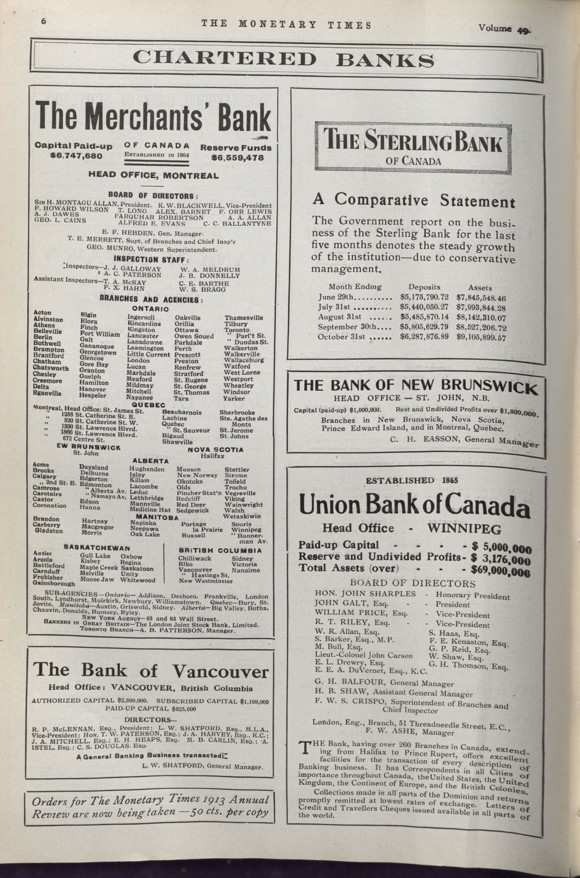 - The Monetary Times, trade review and insurance chronicle. : Vol. 49 No. 26 (December 28, 1912)