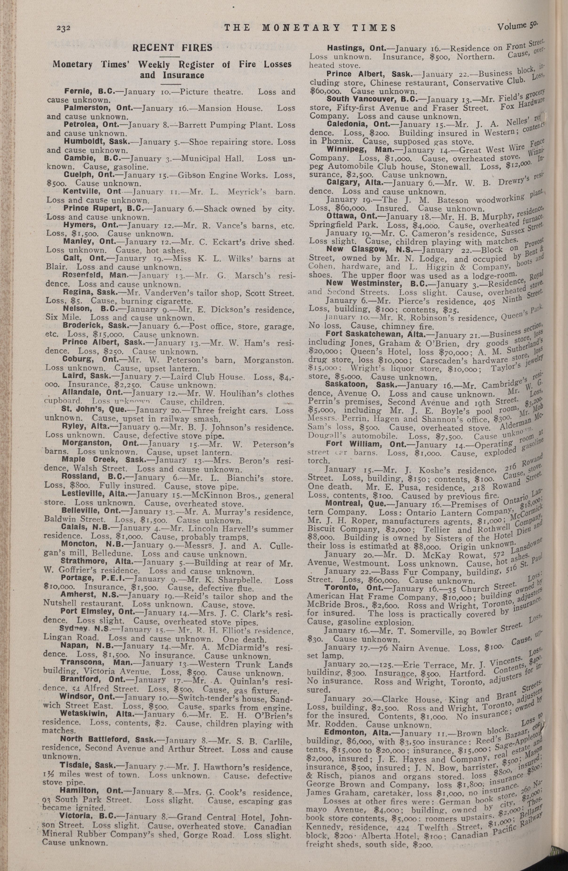 - The Monetary Times, trade review and insurance chronicle. : Vol. 50 No. 4 (January 25, 1913)