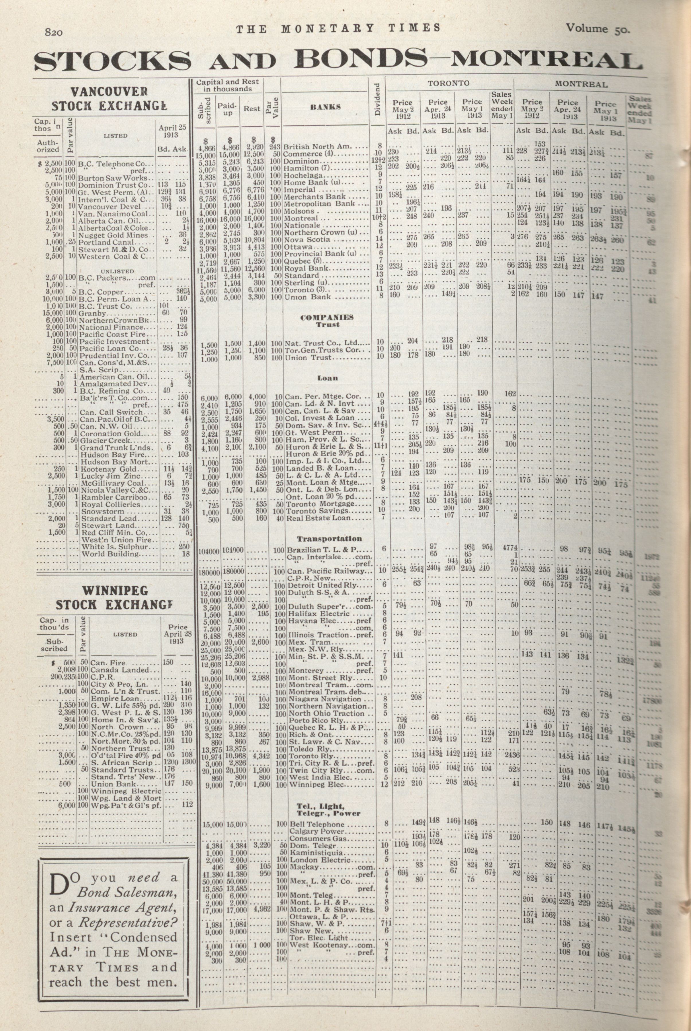 The Monetary Times, trade review and insurance chronicle. : Vol. 50 No. 18 (May 3, 1913)