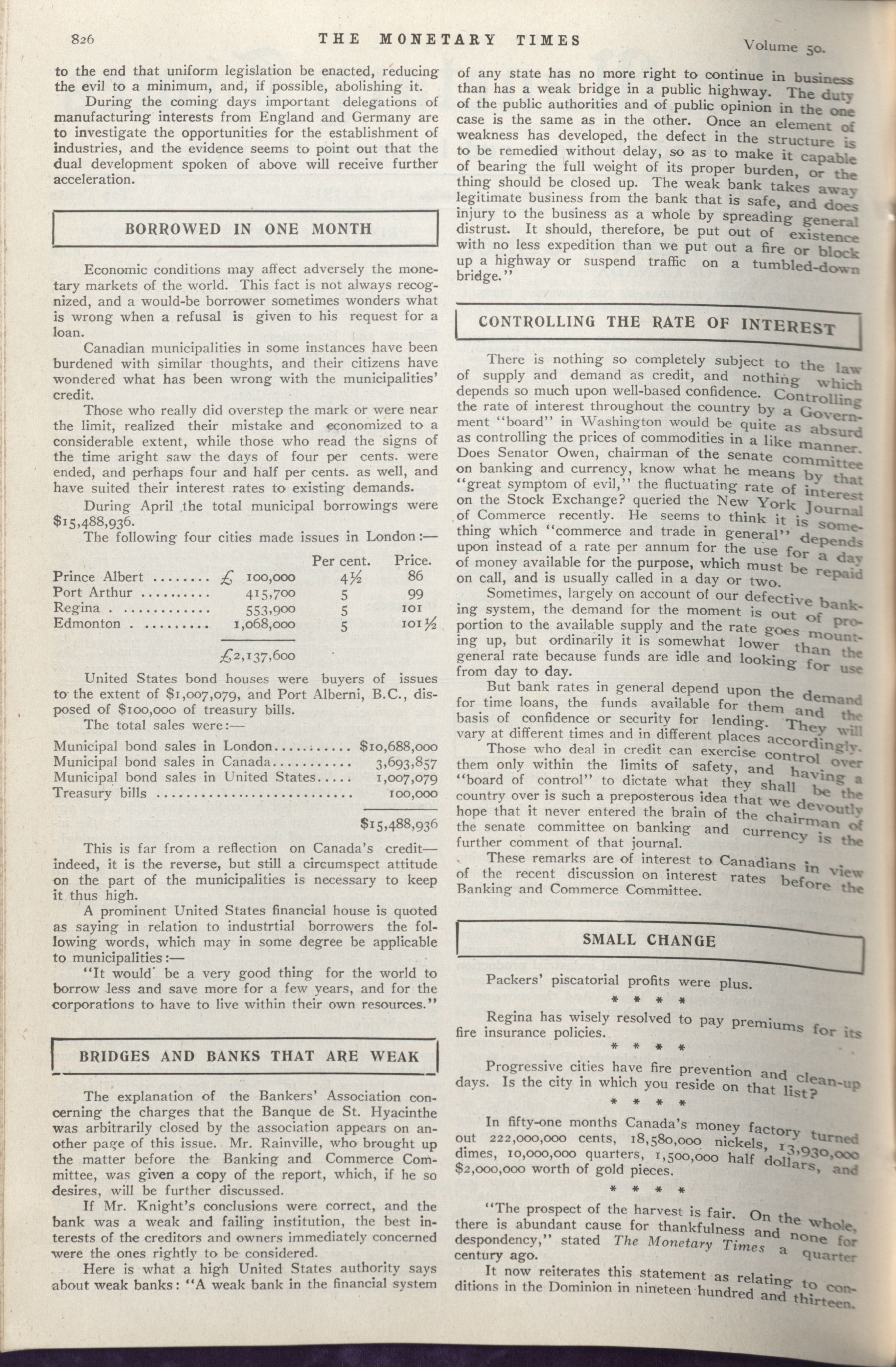 The monetary times, trade review and insurance chronicle : Vol. 50 No. 19 (May 10, 1913)