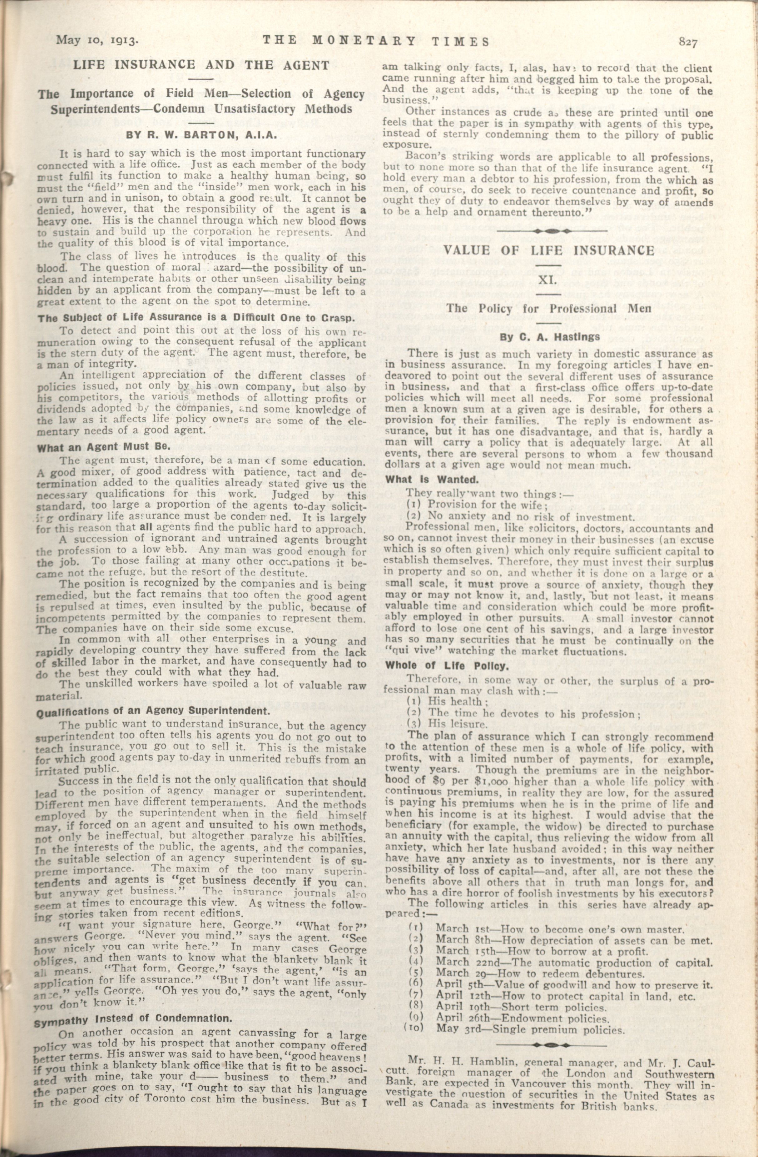 - The Monetary Times, trade review and insurance chronicle. : Vol. 50 No. 19 (May 10, 1913)