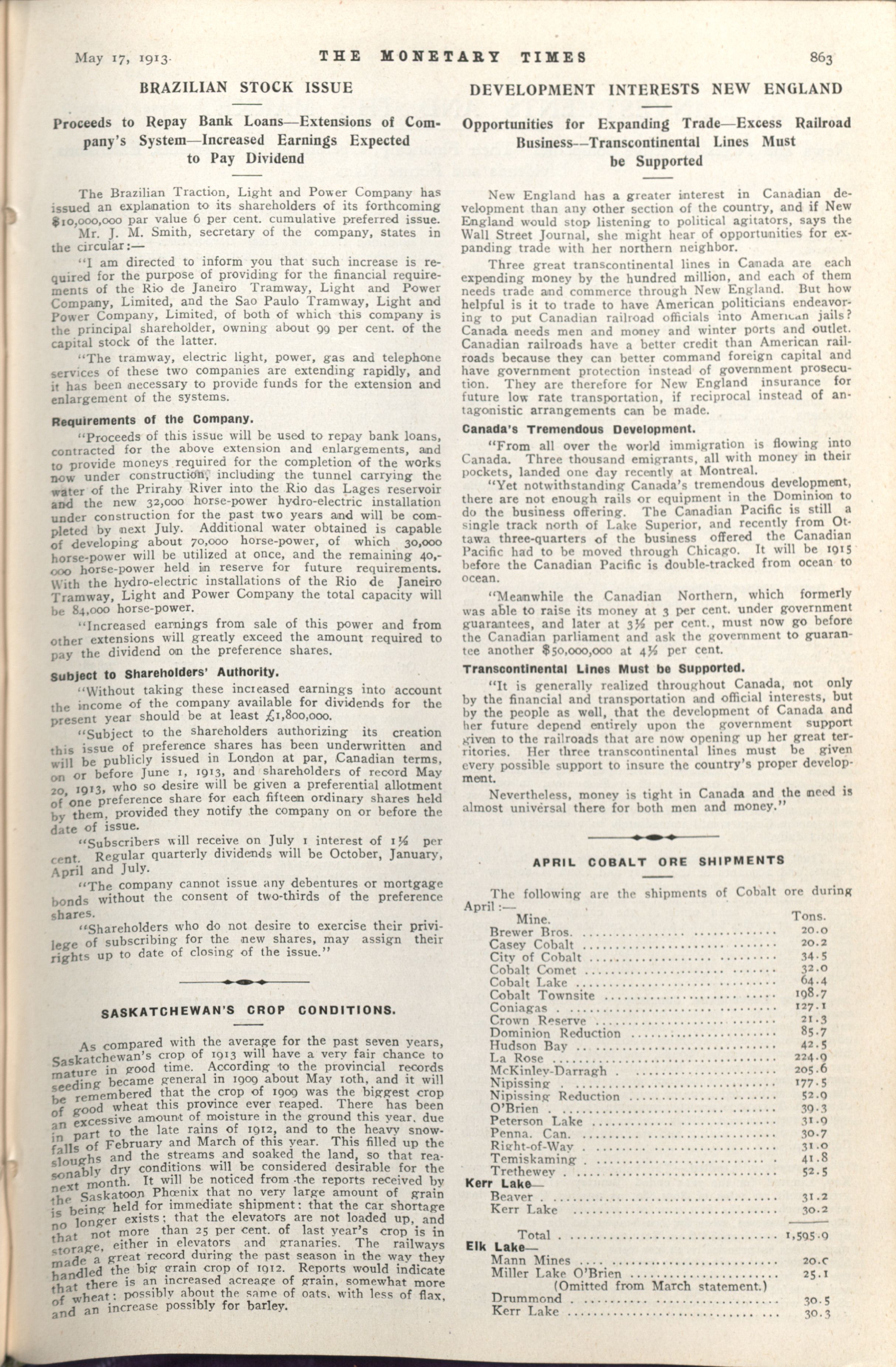 - The Monetary Times, trade review and insurance chronicle. : Vol. 50 No. 20 (May 17, 1913)