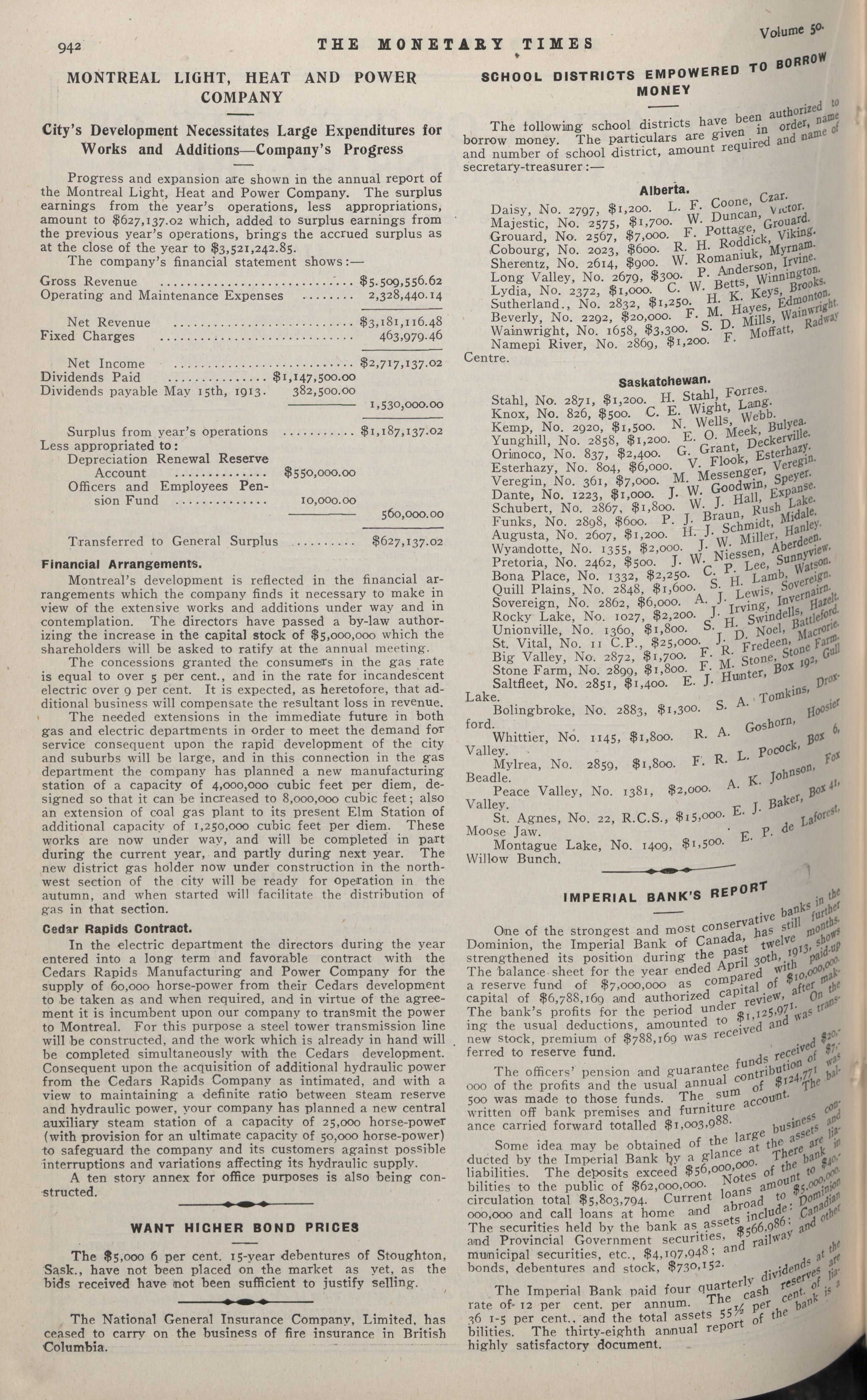 The Monetary Times, trade review and insurance chronicle. : Vol. 50 No. 22 (May 31, 1913)