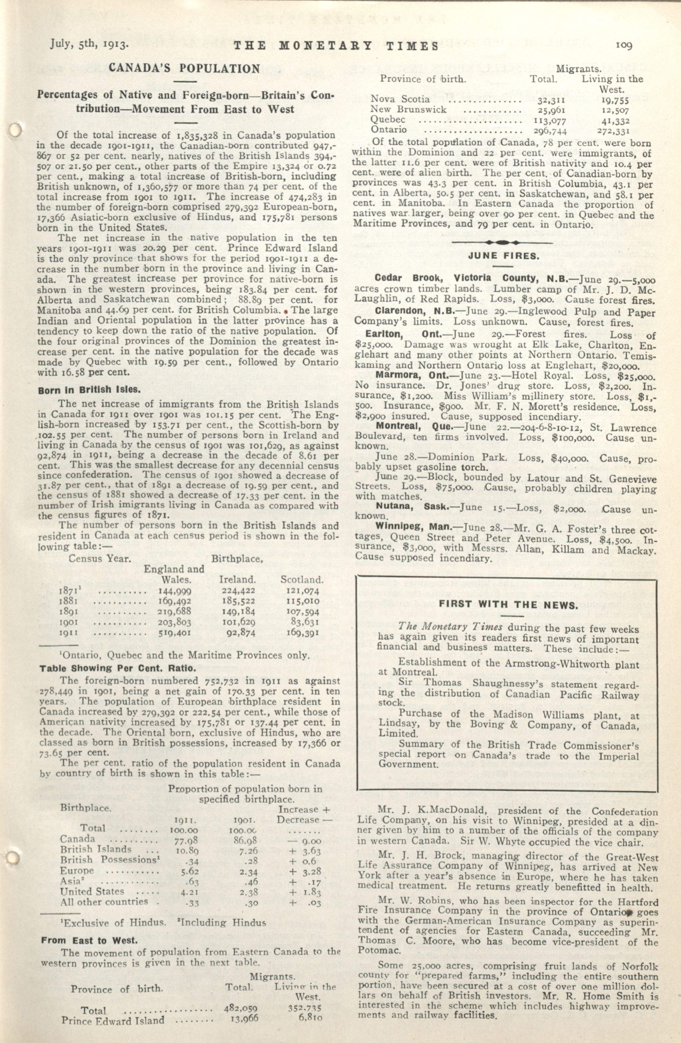 - The Monetary Times, trade review and insurance chronicle. : Vol. 51 No. 1 (July 5, 1913)