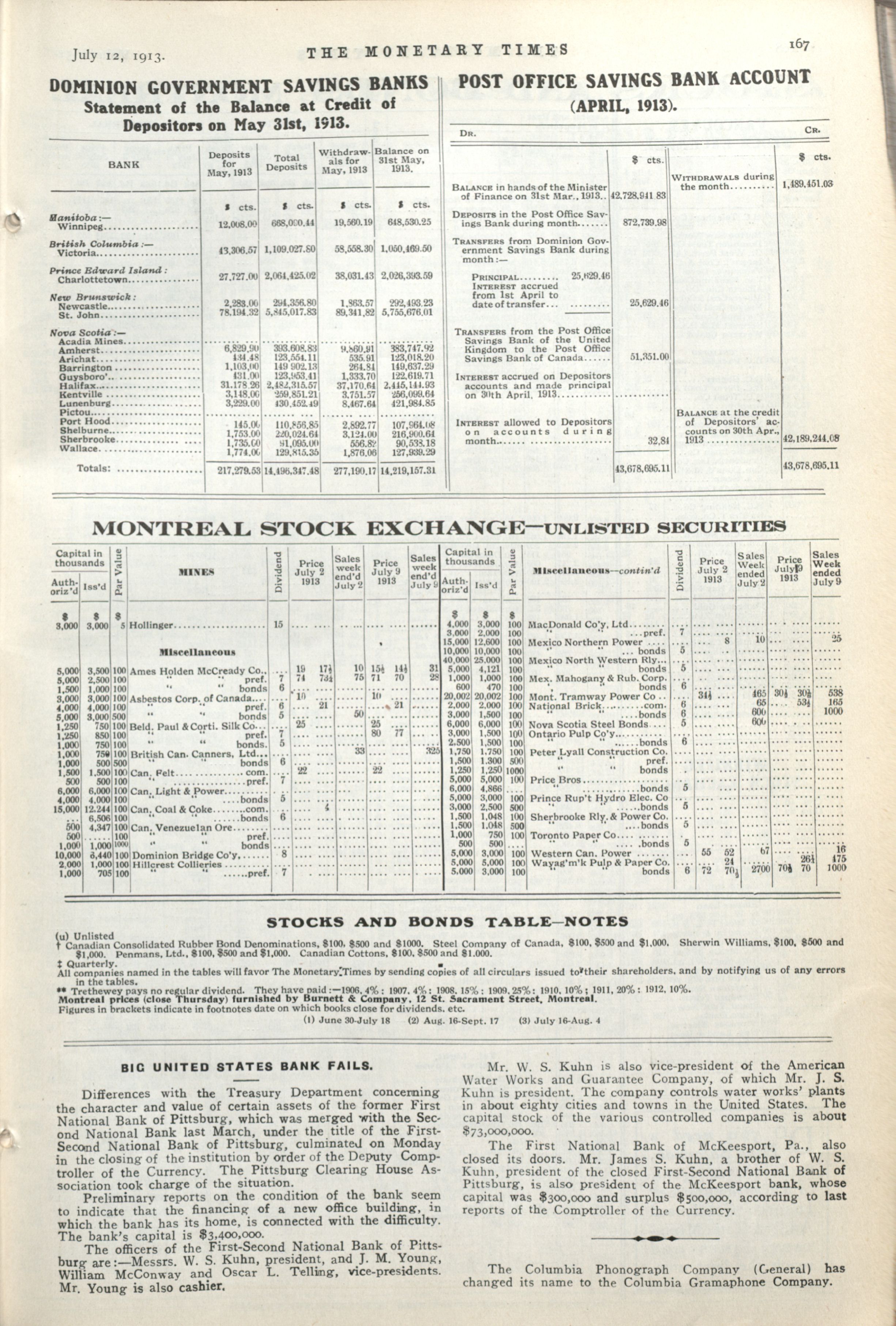 - The Monetary Times, trade review and insurance chronicle. : Vol. 51 No. 2 (July 12, 1913)