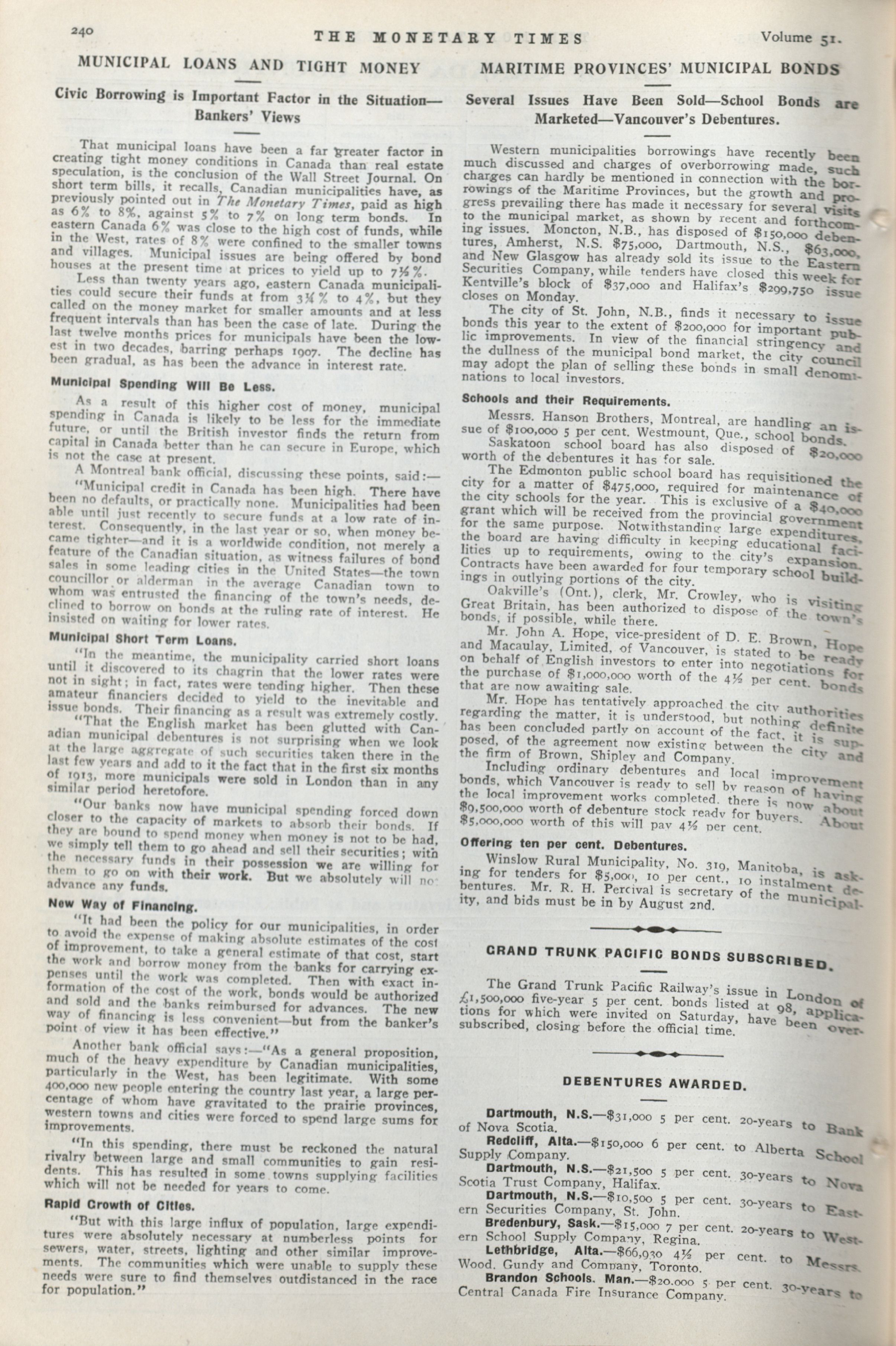 The Monetary Times, trade review and insurance chronicle. : Vol. 51 No. 4 (July 26, 1913)