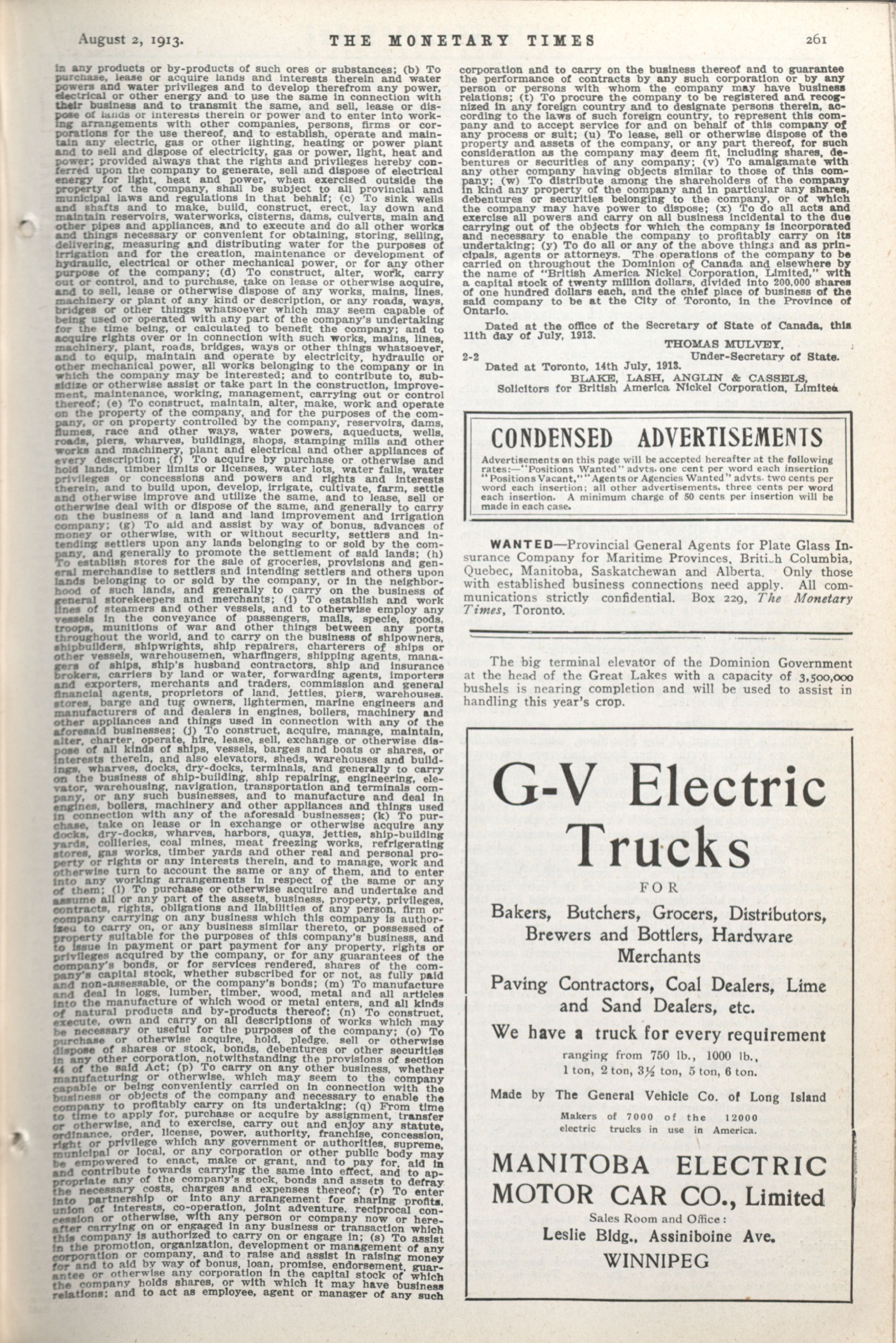 - The Monetary Times, trade review and insurance chronicle. : Vol. 51 No. 5 (August 2, 1913)