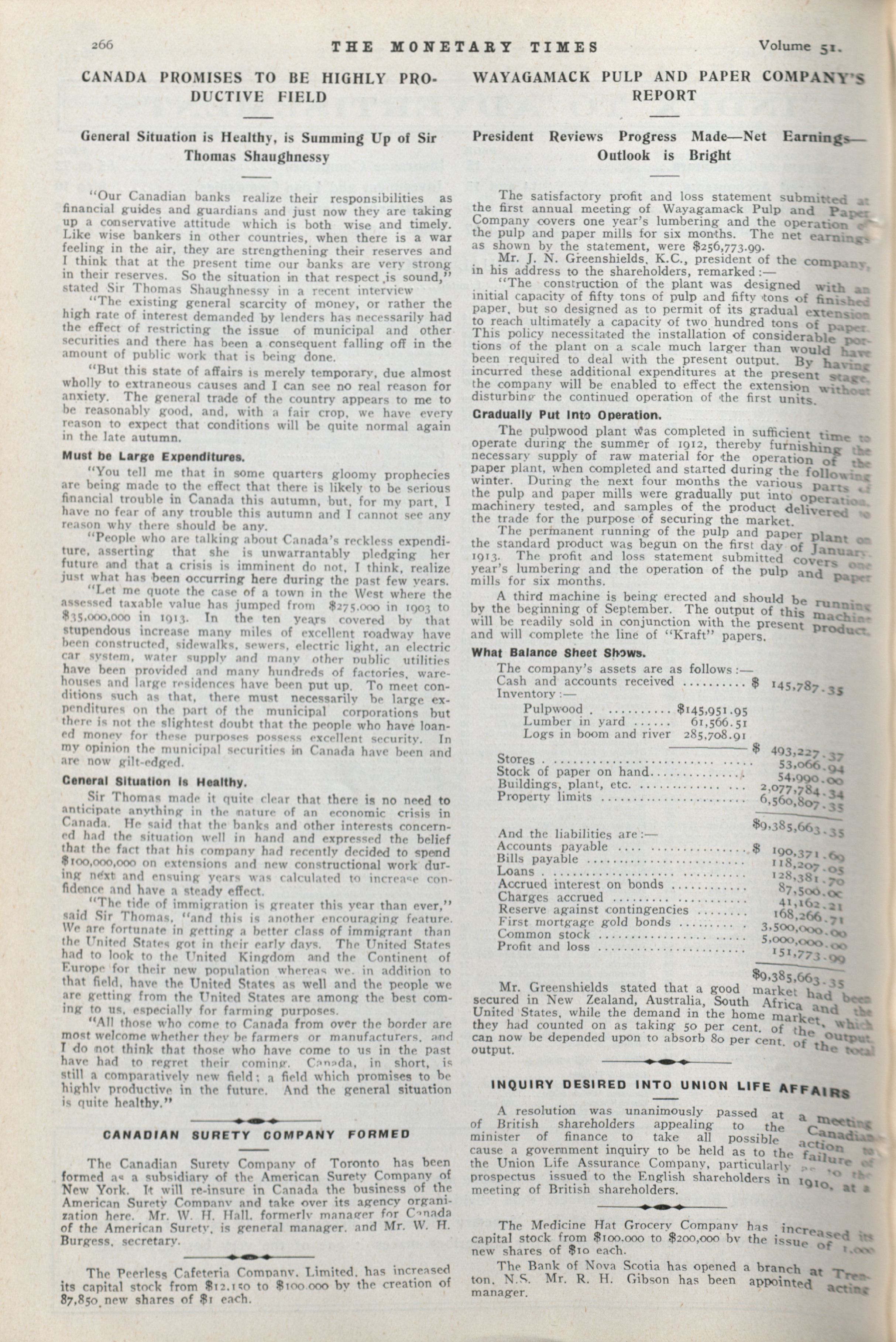 - The Monetary Times, trade review and insurance chronicle. : Vol. 51 No. 5 (August 2, 1913)