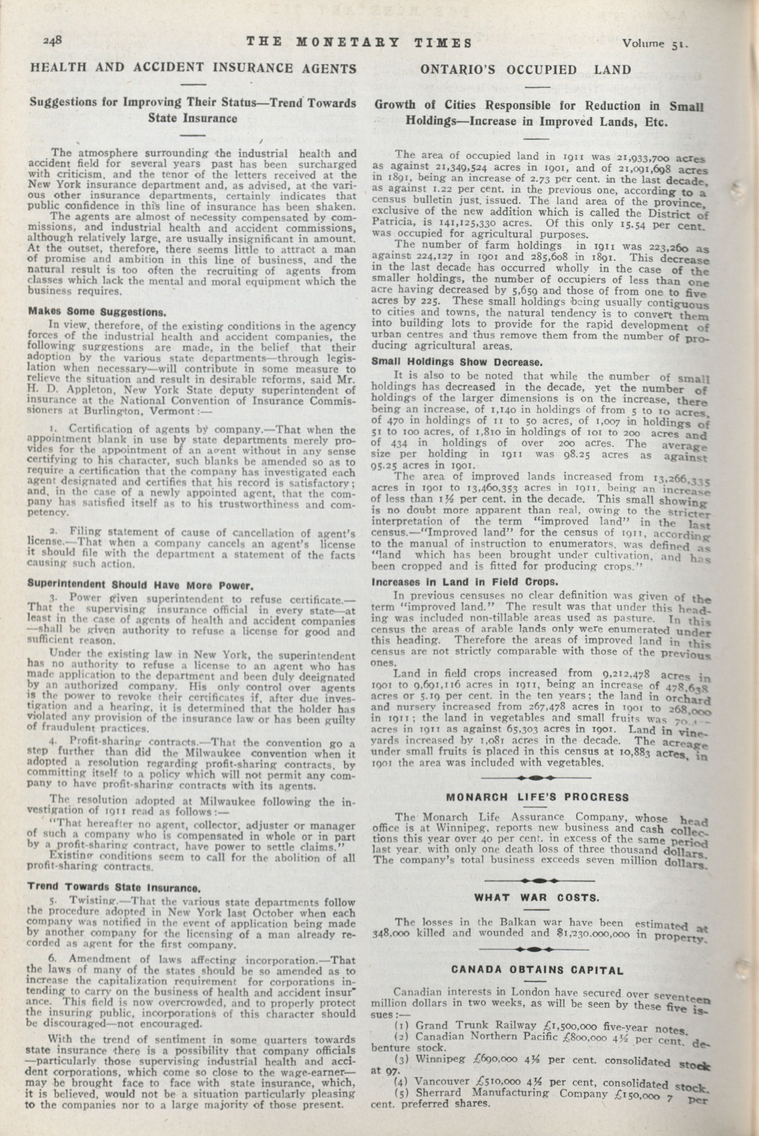 - The Monetary Times, trade review and insurance chronicle. : Vol. 51 No. 5 (August 2, 1913)