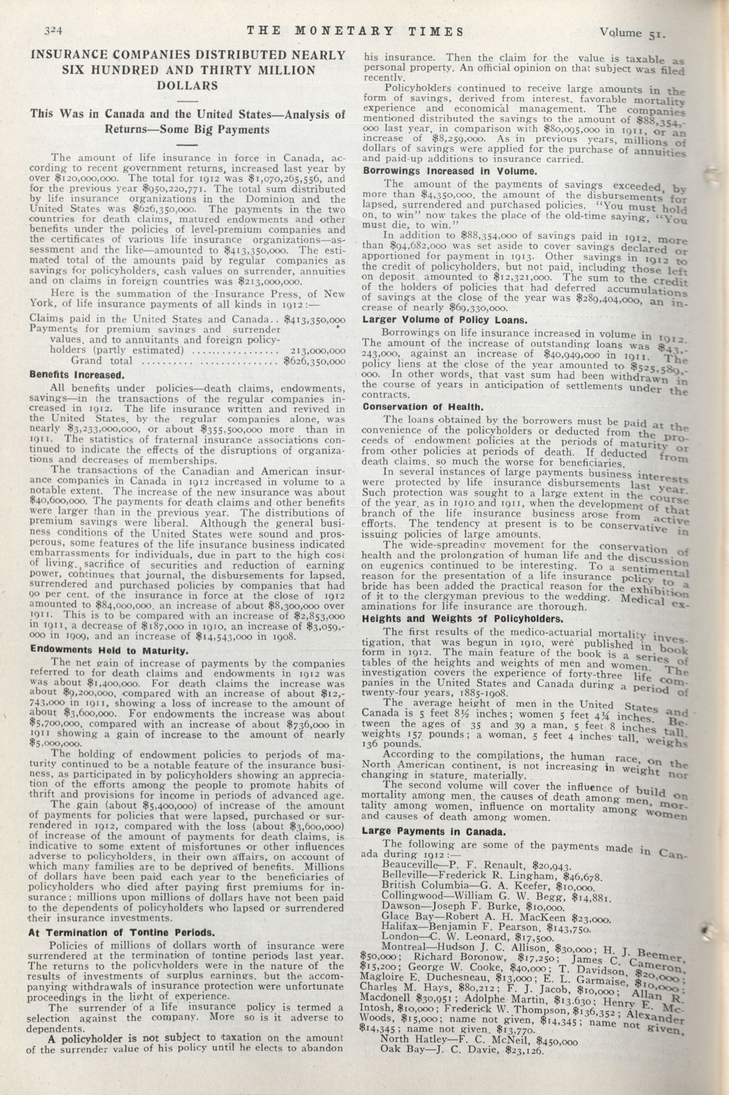 - The Monetary Times, trade review and insurance chronicle. : Vol. 51 No. 7 (August 16, 1913)