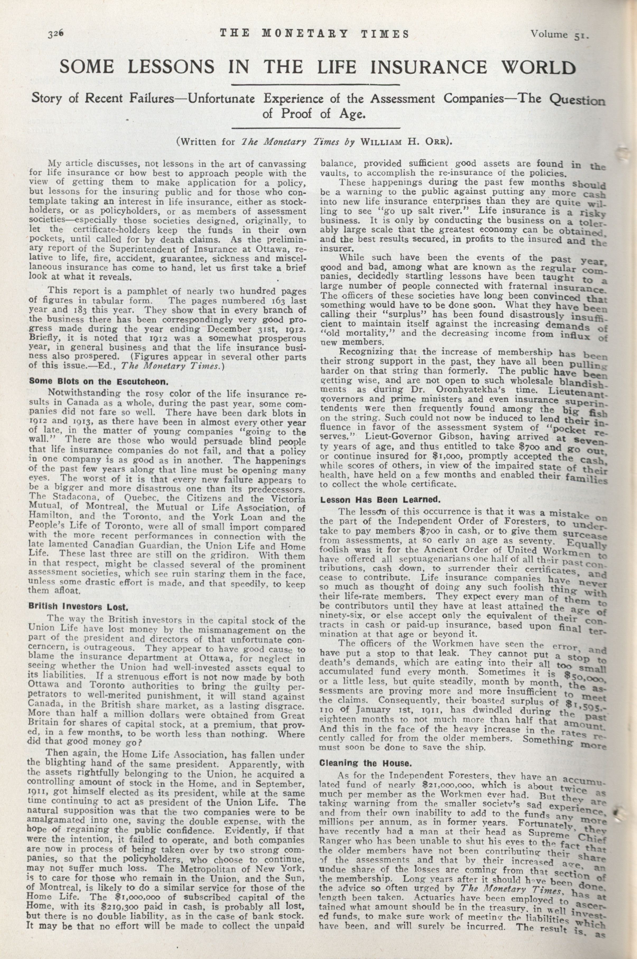 - The Monetary Times, trade review and insurance chronicle. : Vol. 51 No. 7 (August 16, 1913)