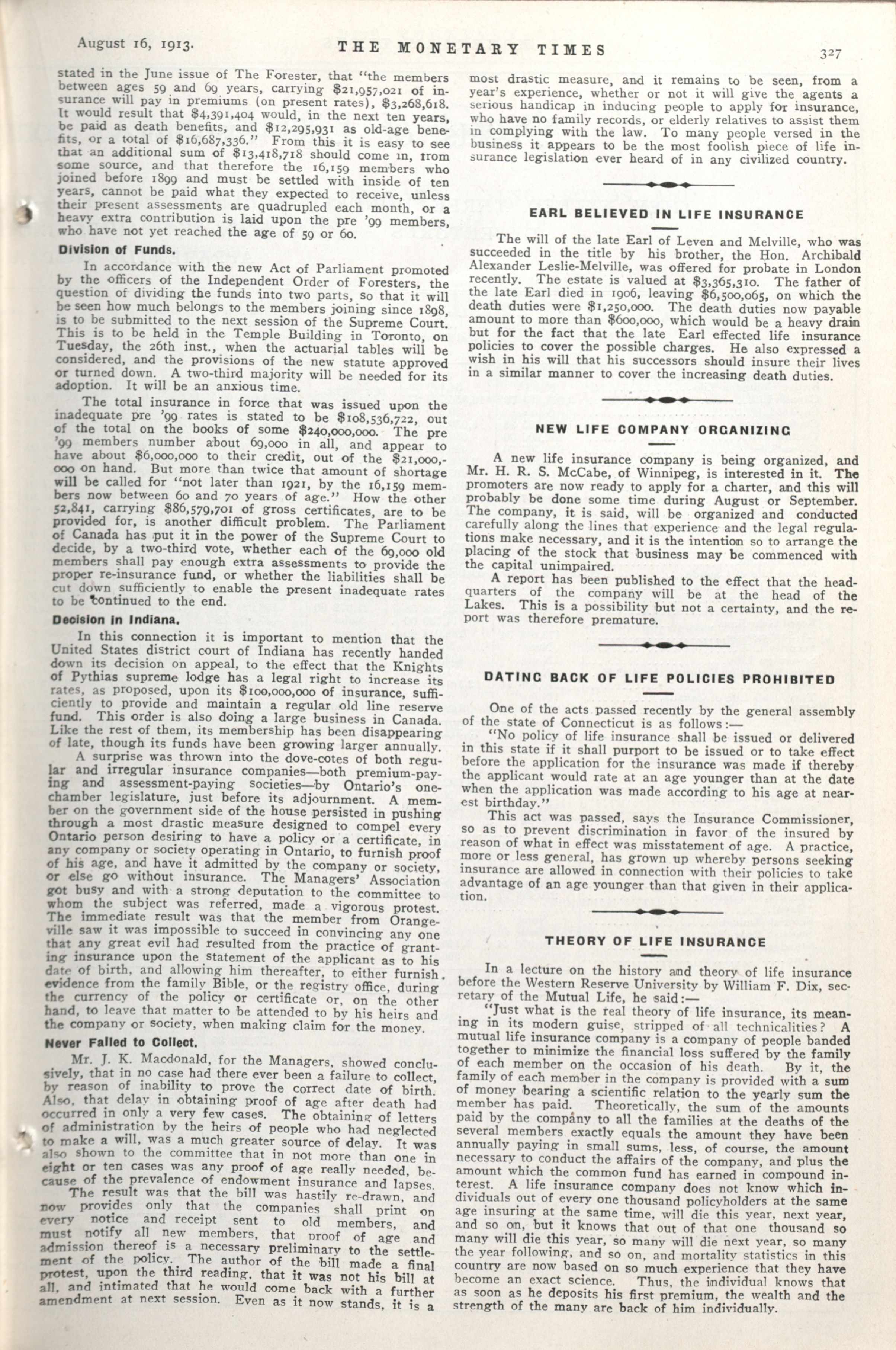 - The Monetary Times, trade review and insurance chronicle. : Vol. 51 No. 7 (August 16, 1913)