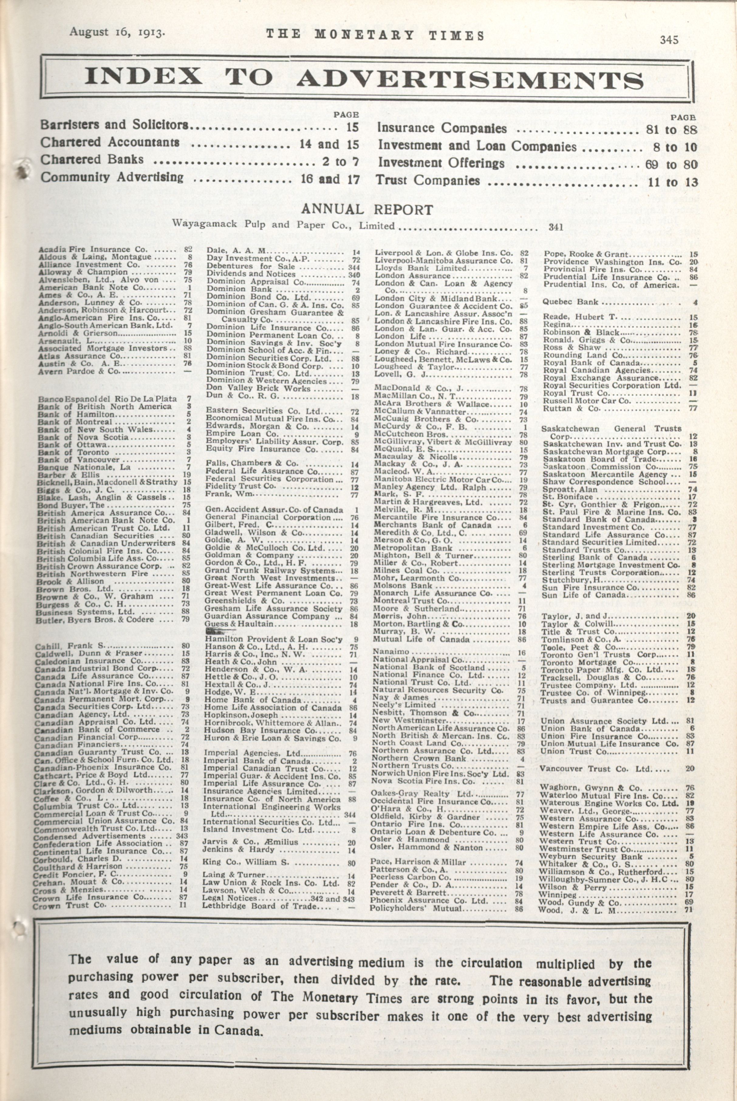 - The Monetary Times, trade review and insurance chronicle. : Vol. 51 No. 7 (August 16, 1913)