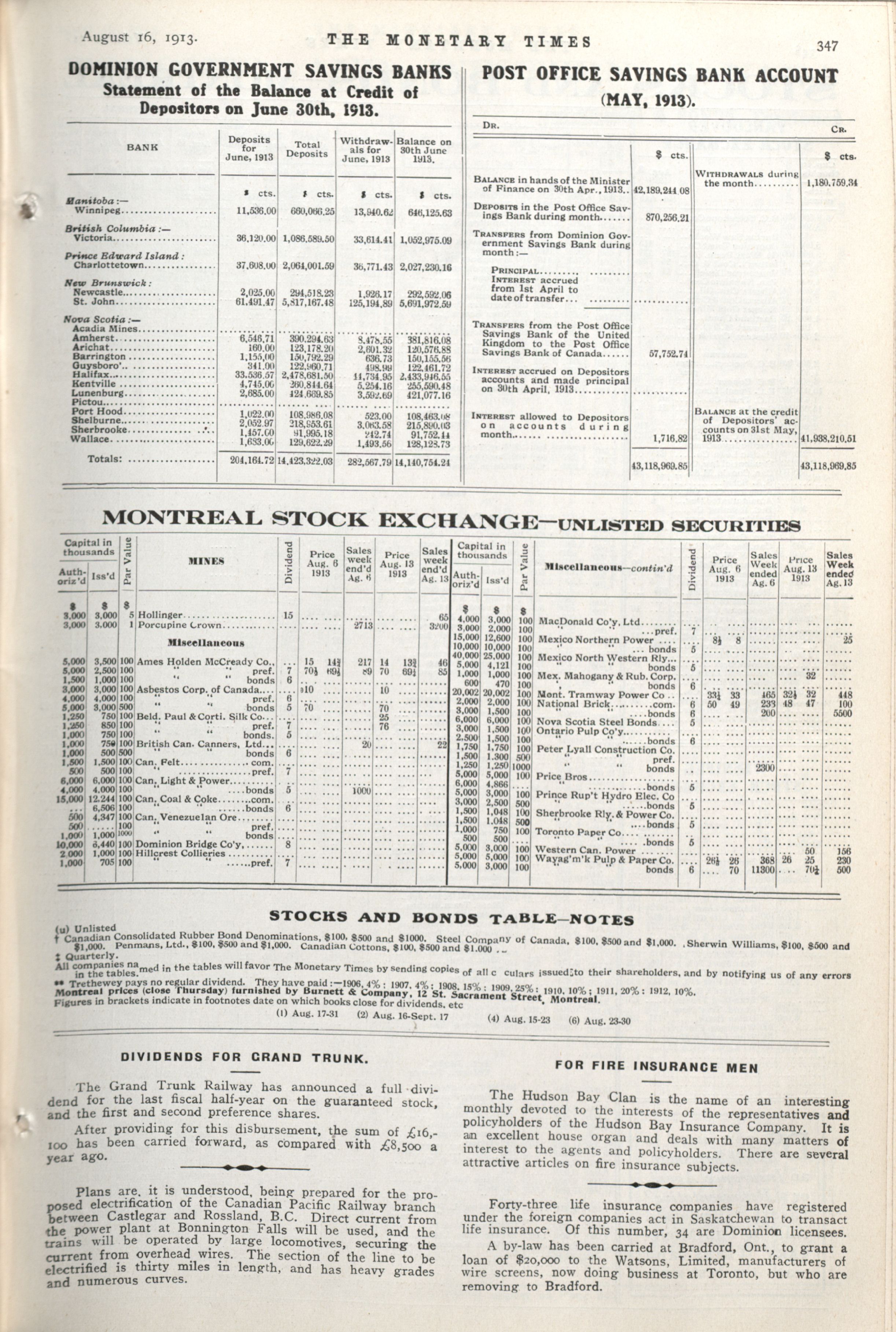 - The Monetary Times, trade review and insurance chronicle. : Vol. 51 No. 7 (August 16, 1913)