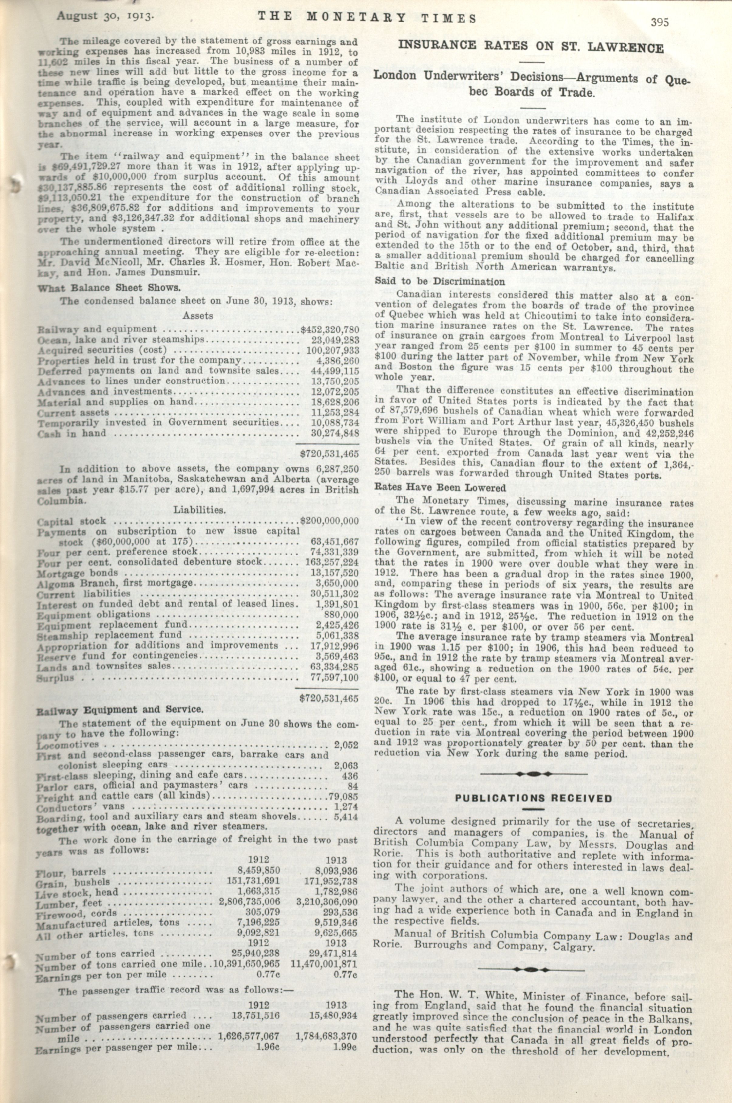 The Monetary Times, trade review and insurance chronicle. : Vol. 51 No. 9 (August 30, 1913)