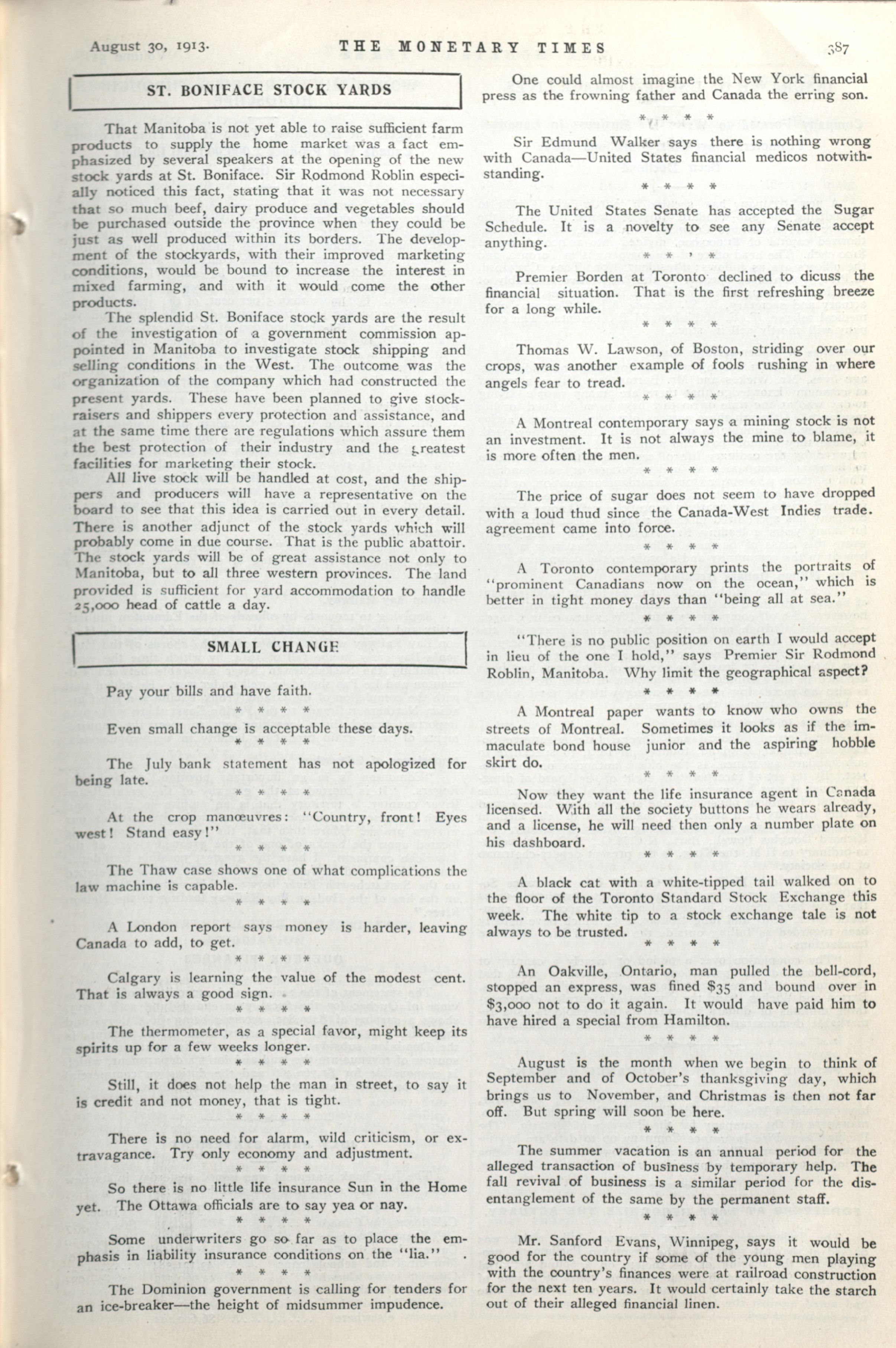 The Monetary Times, trade review and insurance chronicle. : Vol. 51 No. 9 (August 30, 1913)