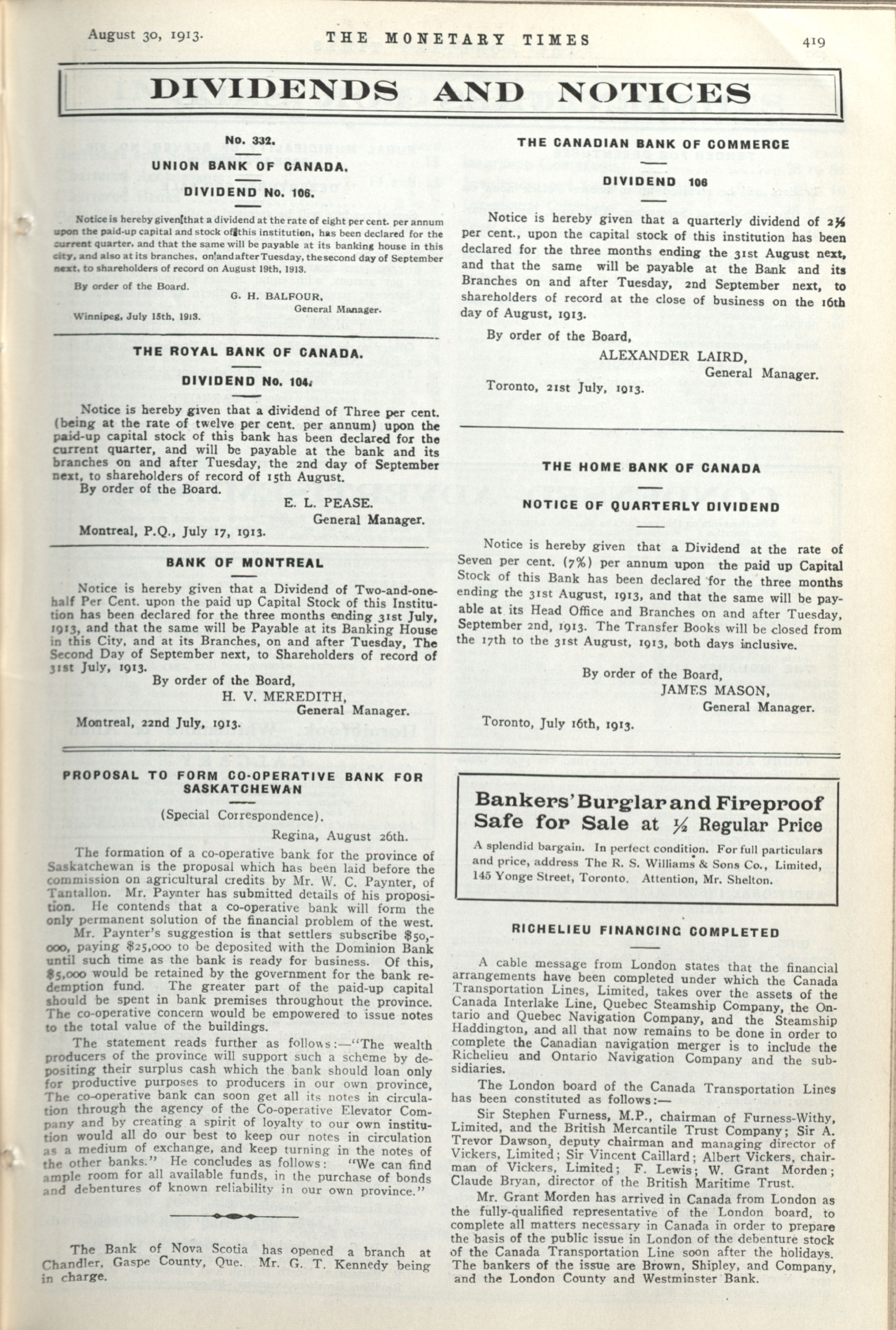 The monetary times, trade review and insurance chronicle : Vol. 51 No. 9 (August 30, 1913)