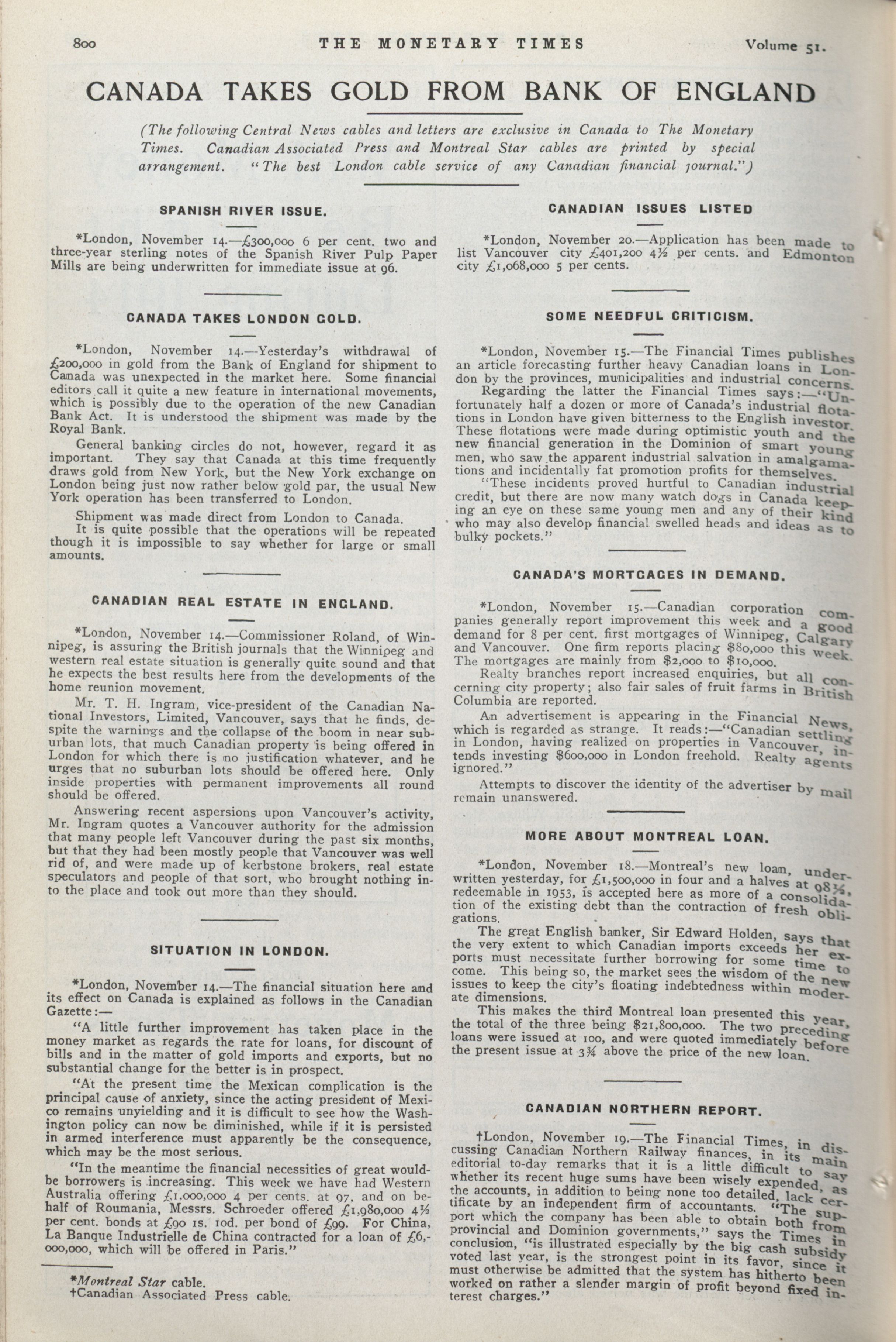 - The Monetary Times, trade review and insurance chronicle. : Vol. 51 No. 21 (November 22, 1913)