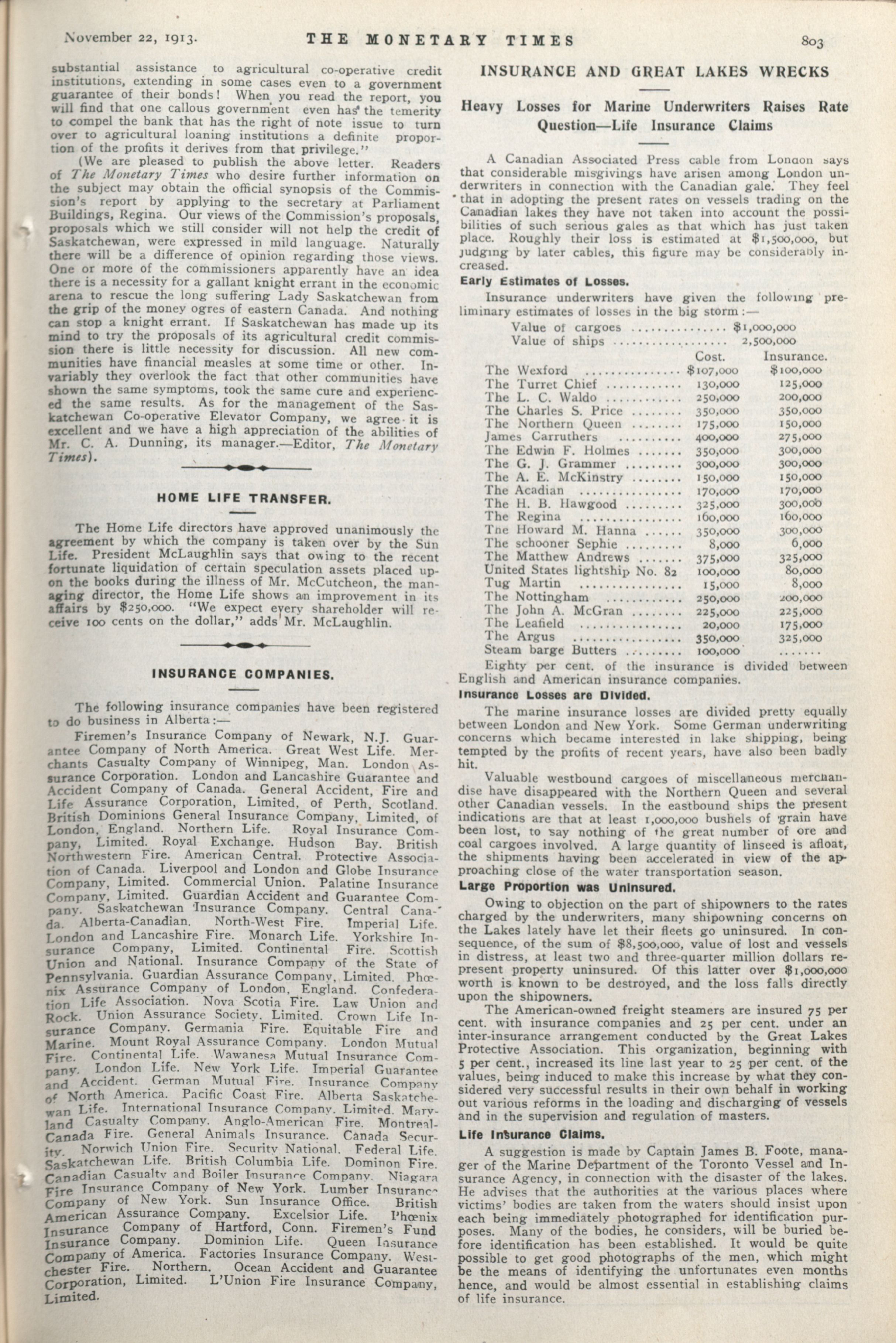- The Monetary Times, trade review and insurance chronicle. : Vol. 51 No. 21 (November 22, 1913)