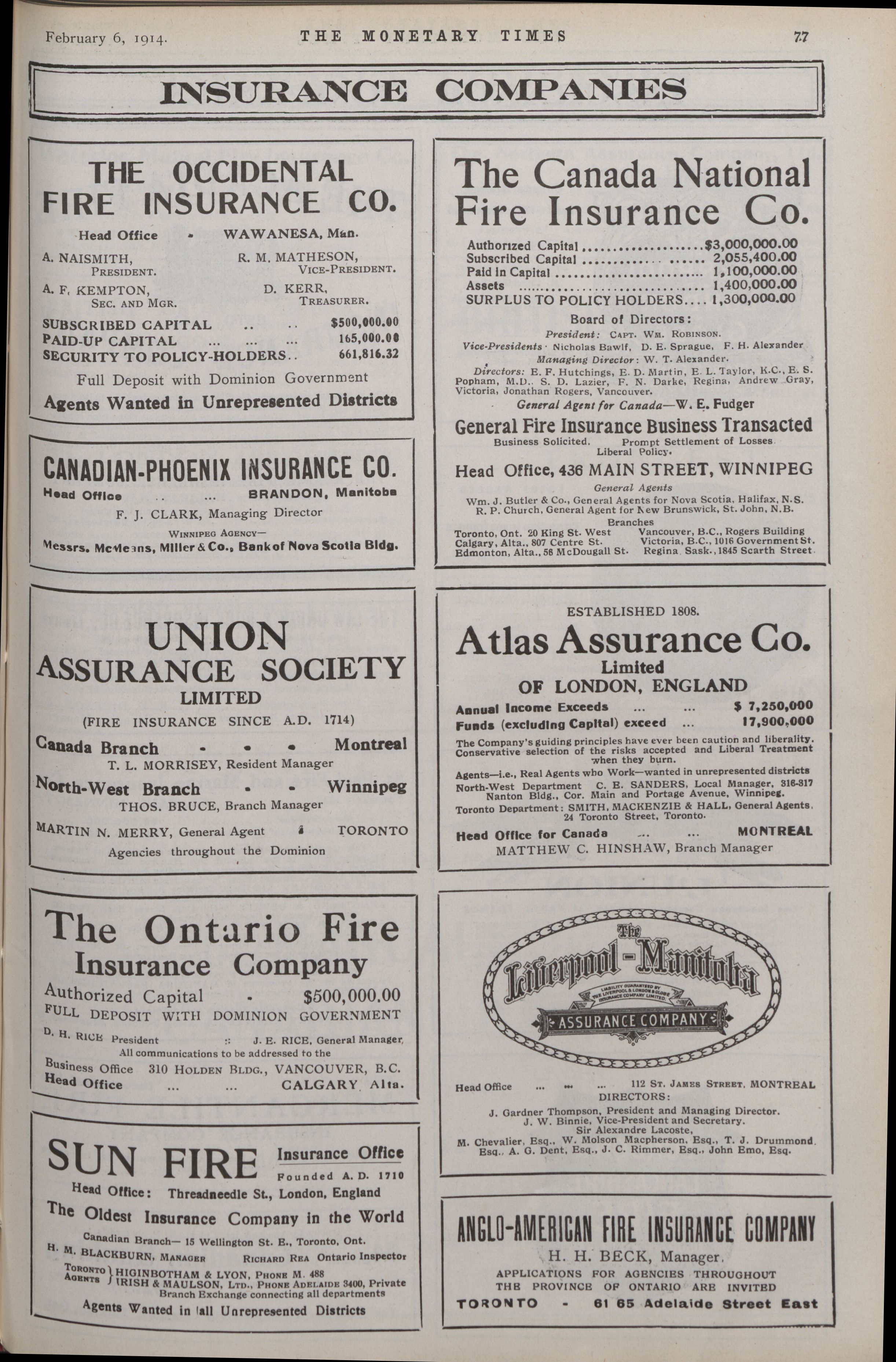 The Monetary Times, trade review and insurance chronicle. : Vol. 52 No. 6 (February 6, 1914)