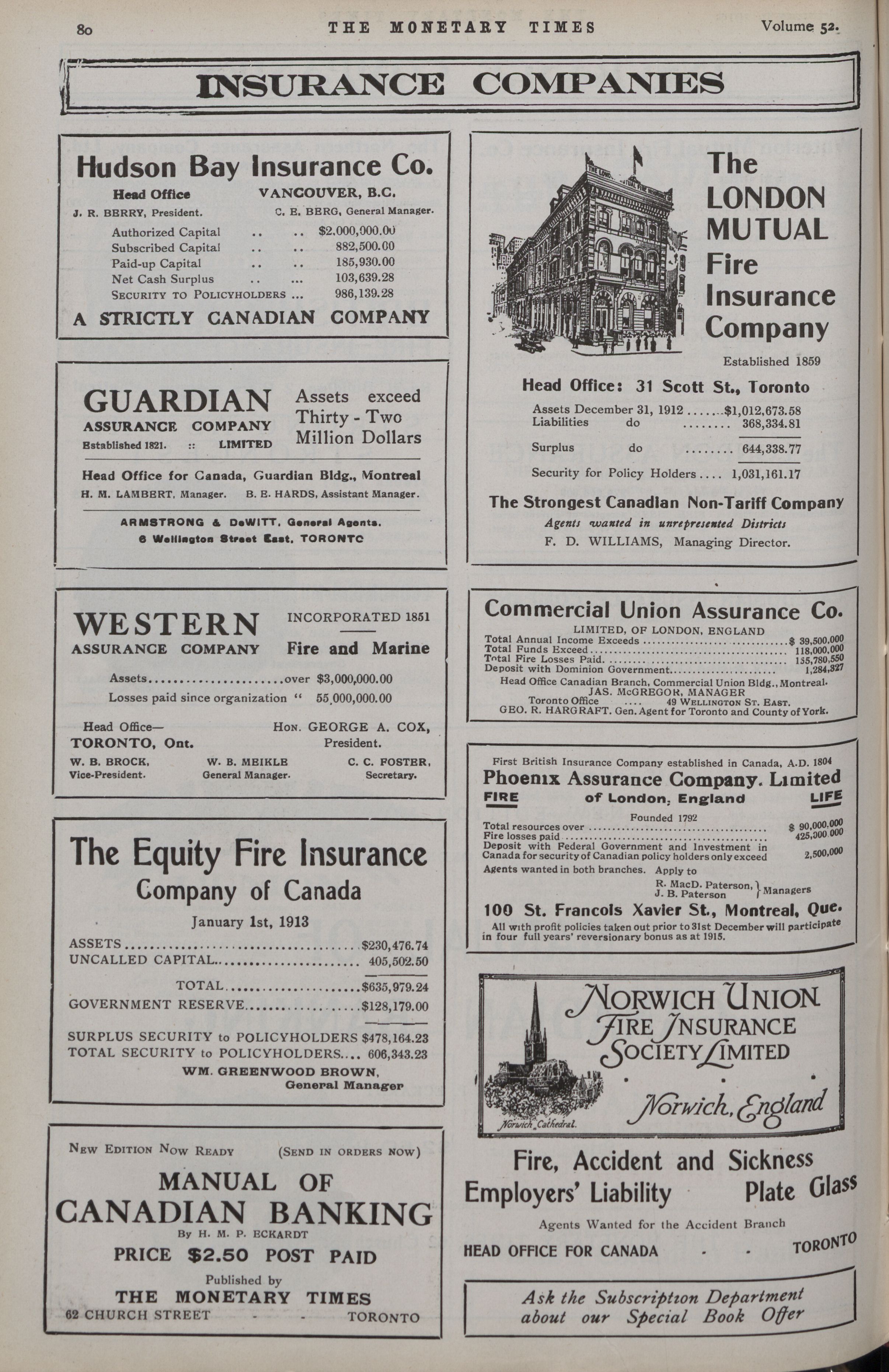 The Monetary Times, trade review and insurance chronicle. : Vol. 52 No. 6 (February 6, 1914)