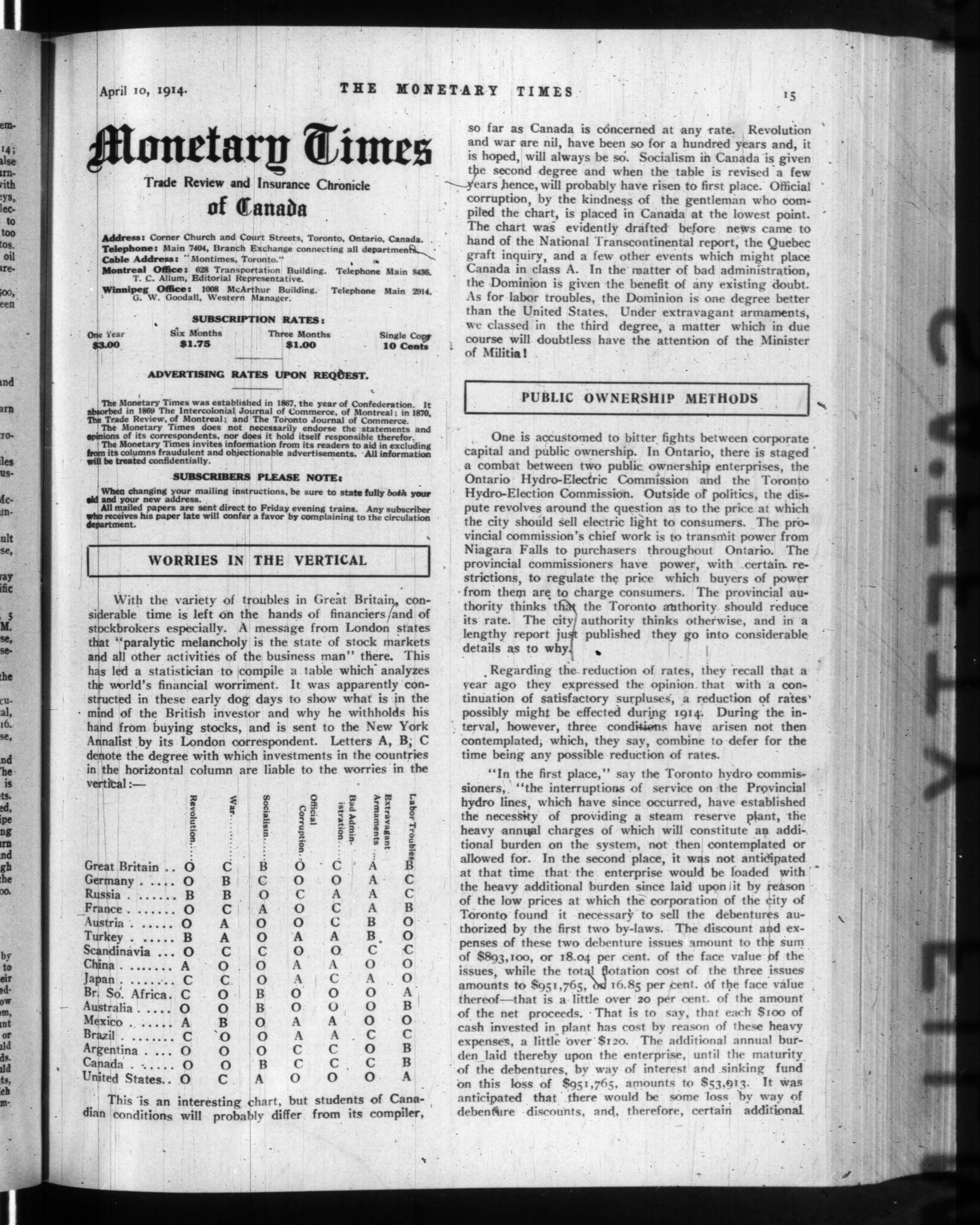 The monetary times, trade review and insurance chronicle : Vol. 52, [no. 15] (April 10, 1914)