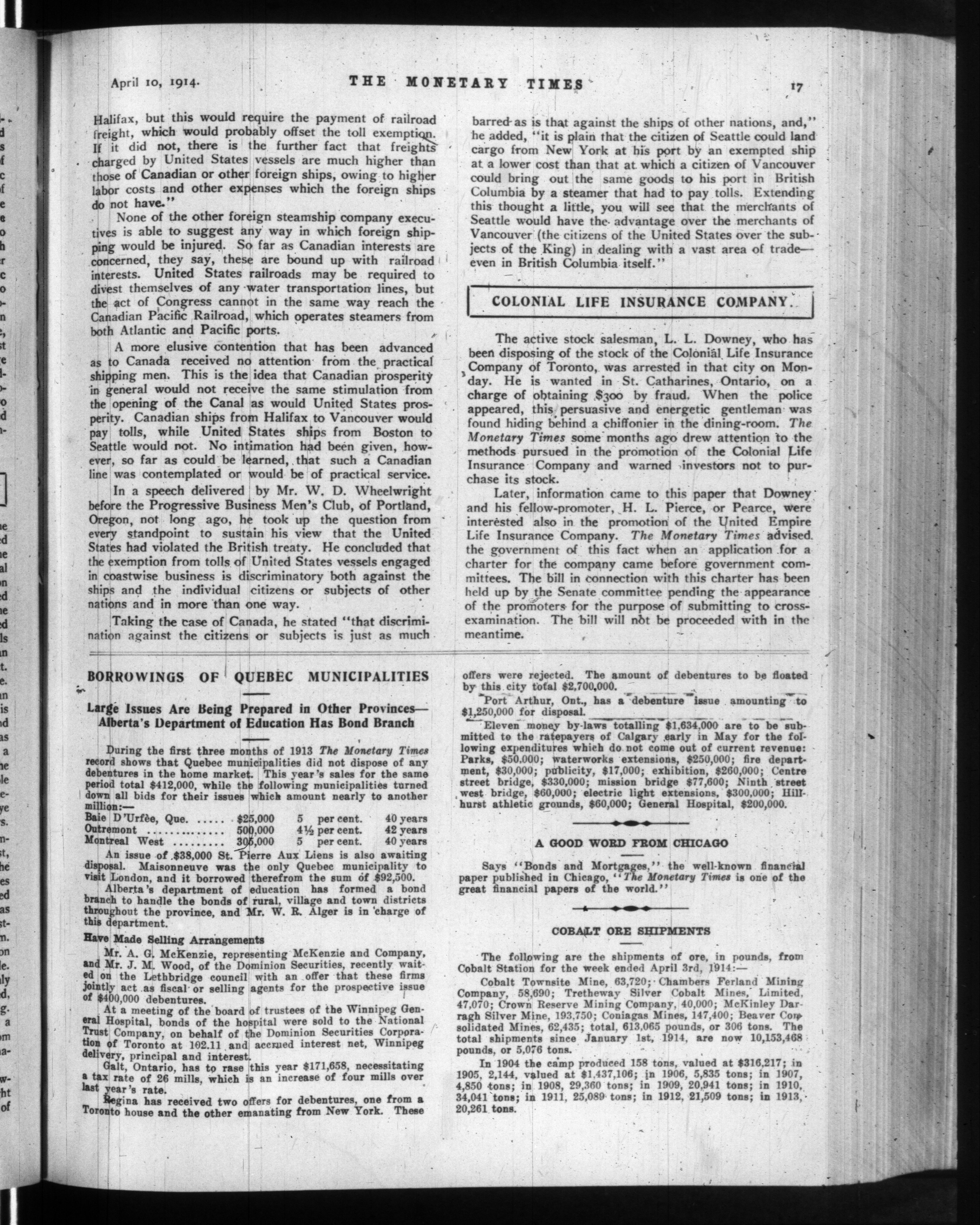 The monetary times, trade review and insurance chronicle : Vol. 52, [no. 15] (April 10, 1914)