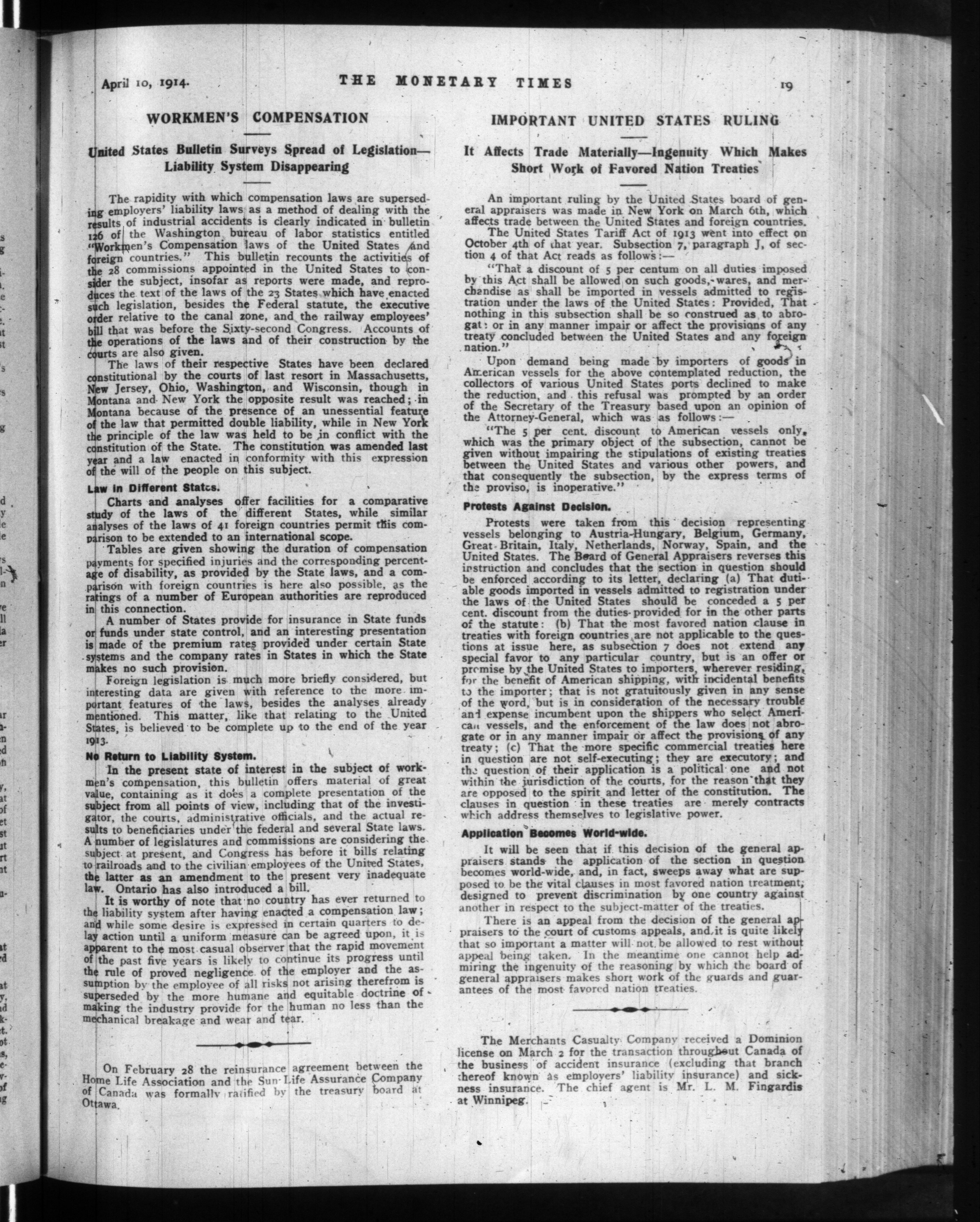 The monetary times, trade review and insurance chronicle : Vol. 52, [no. 15] (April 10, 1914)